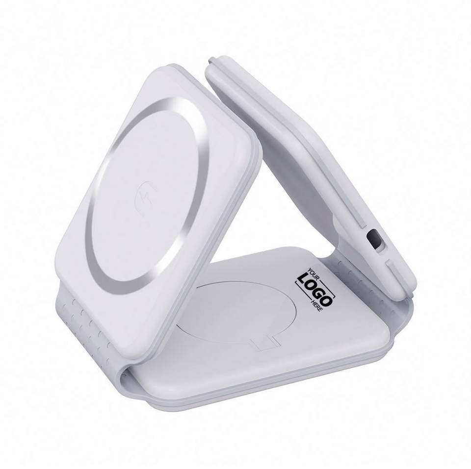 Station de charge sans fil 3-en-1 durable en PVC, pliable magnétique, chargeur rapide de voyage, promotion personnalisée pour marque