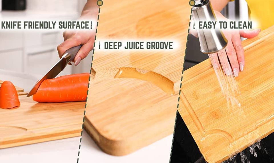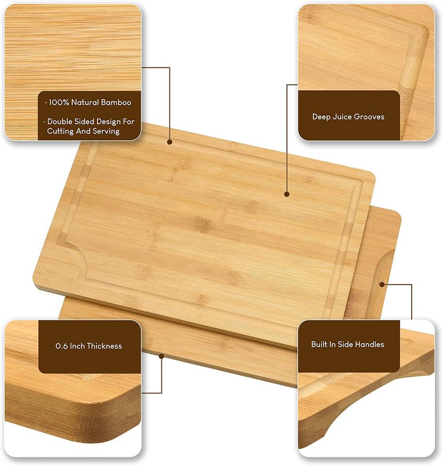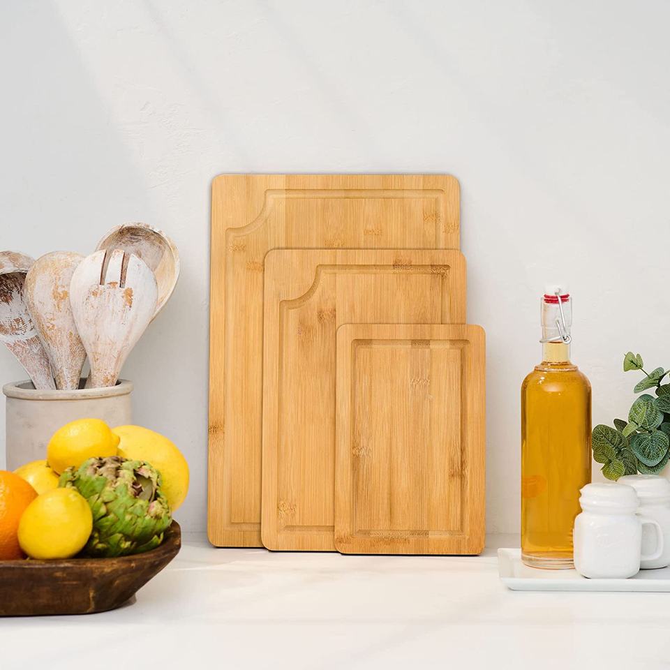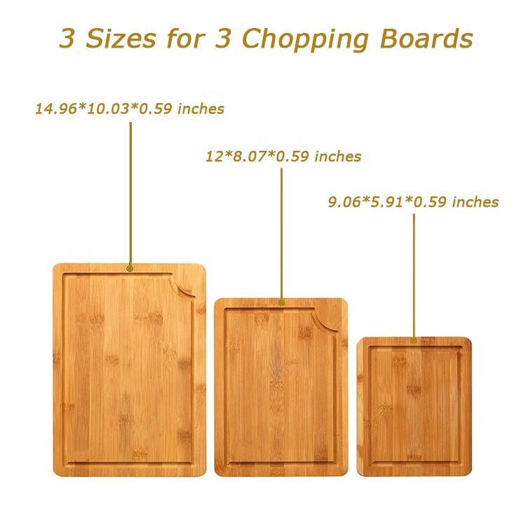 Ensemble de 3 planches à découper en bambou écologiques, organiques et naturelles, plateaux de service pour steak, planche à découper en bambou