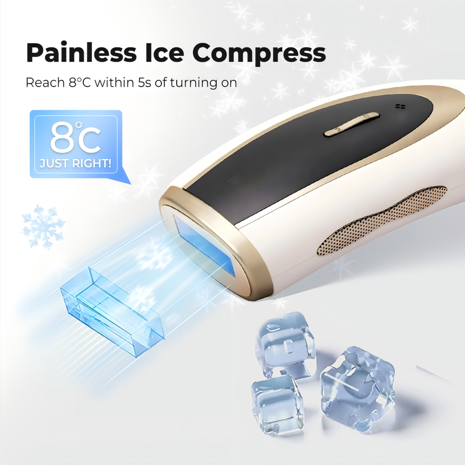 Spectrum Épilateur IPL 3‑en‑1 portable (8 Ice Cooling) pour femmes — épilation permanente 7,92–15,31 J >300 000 impulsions 100 pcs