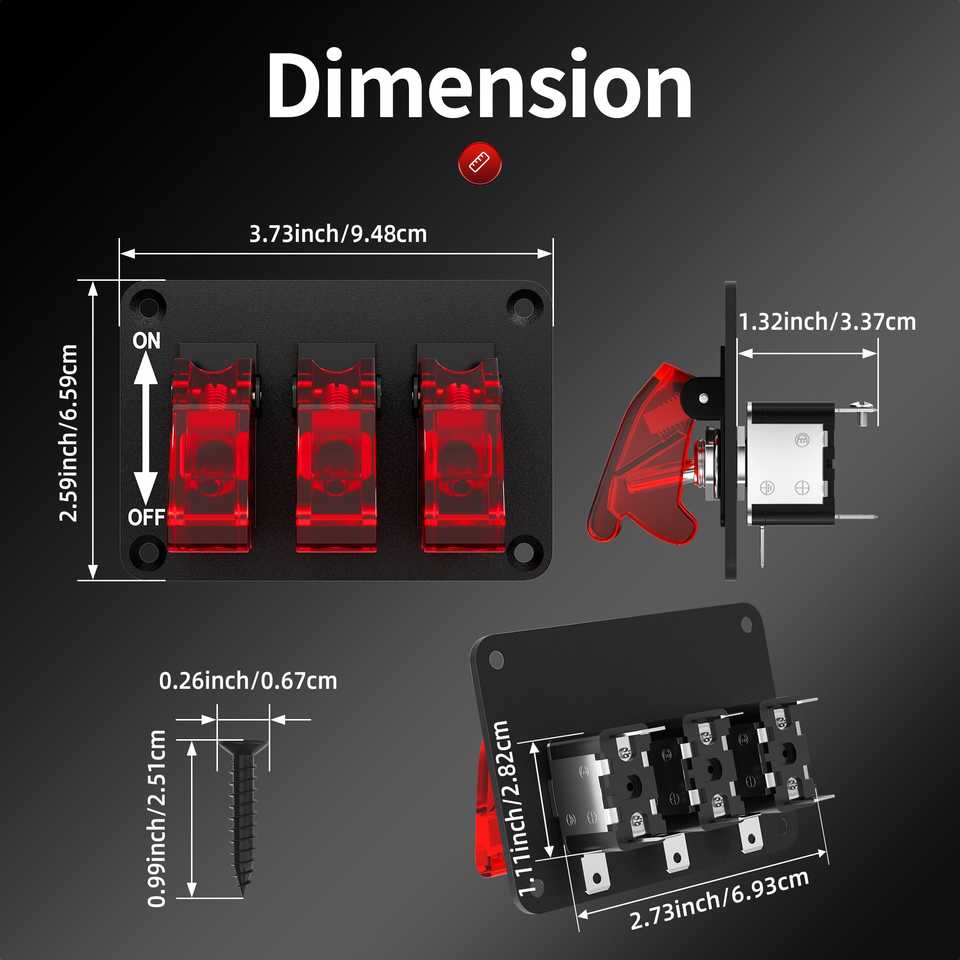 Panneau d'interrupteur à bascule 3 en 1 avec lumière LED et couvercle pour voiture, camion, remorque, bateau