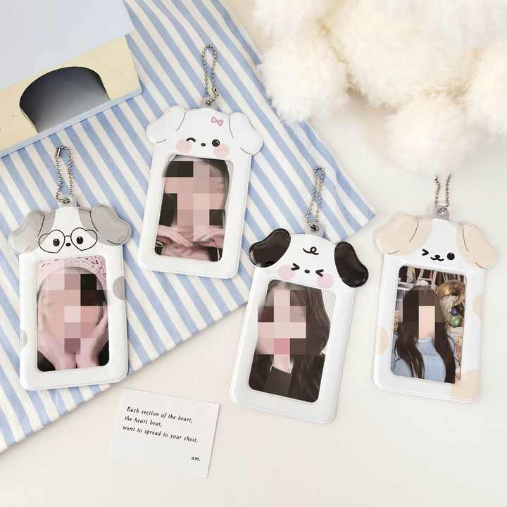 Porte-clés Cadre Photo Acrylique 3 Pouces Motif Chien de Dessin Animé Mignon, Pendentif pour Album Kpop, Porte-clés Photo, Étui de Protection pour Carte d'Identité