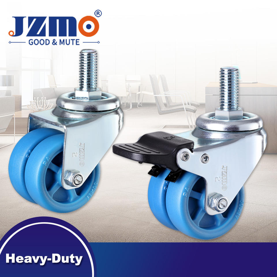Roue pivotante solide à double roulement en nylon de 3 pouces, verrouillable, robuste, pneumatique, en acier inoxydable, avec ressort pour portail