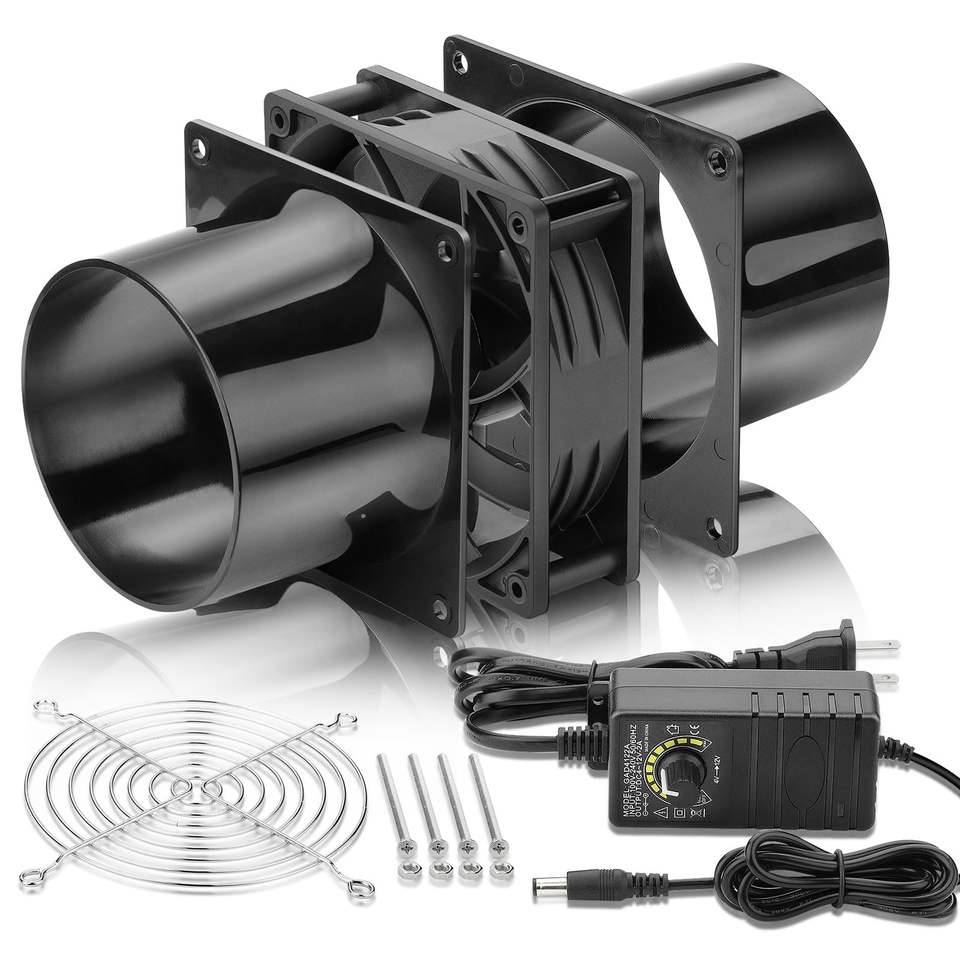 Ventilateur de conduit en plastique de 3 pouces 80x38mm avec contrôleur de vitesse, adaptateurs, double roulement à billes, améliore le flux d'air pour garage, atelier, remise, bricolage