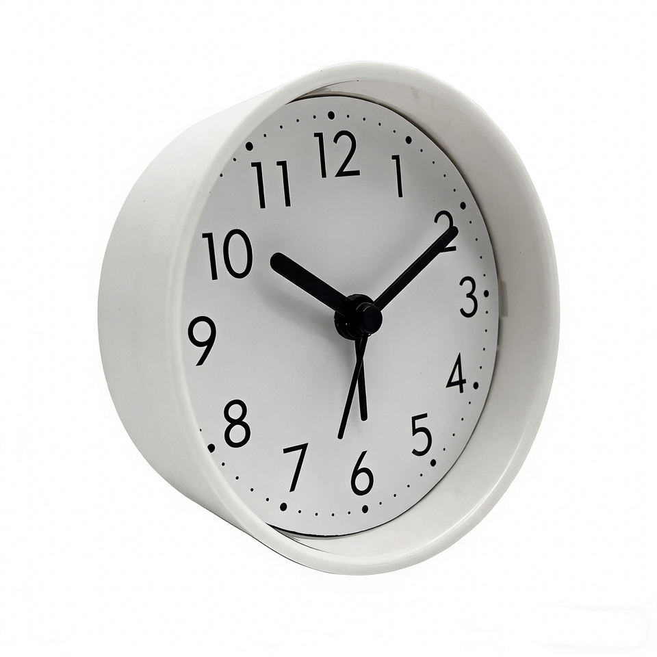 Horloge de bureau silencieuse en plastique blanc de 3 pouces pour cadeaux d'affaires et souvenirs