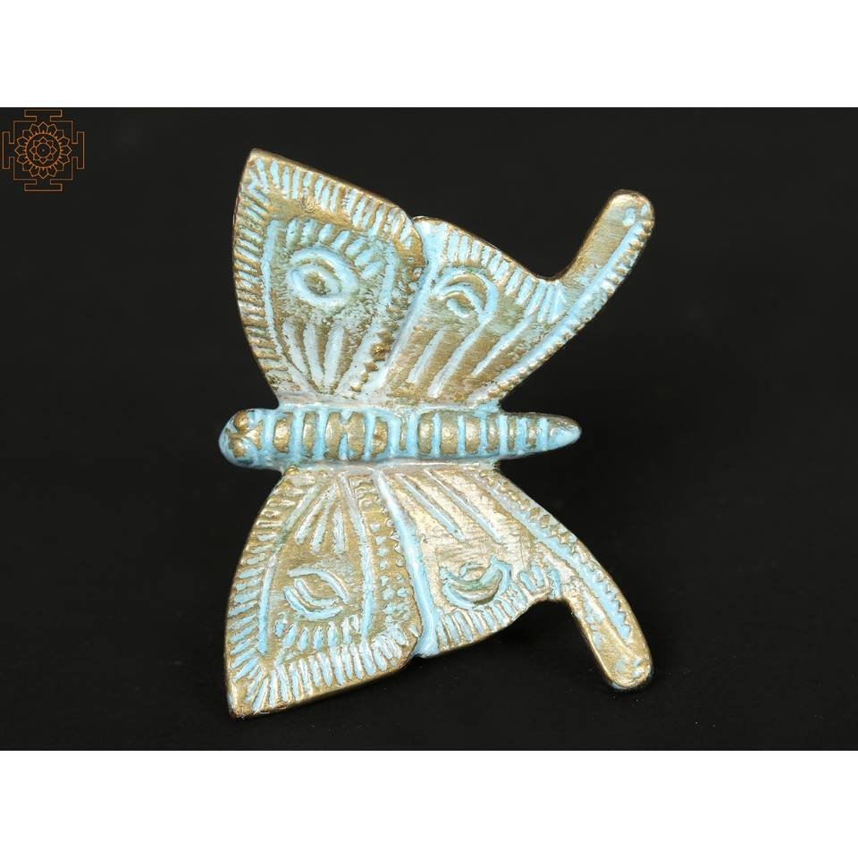 Décalcomanie murale de 3 pouces de papillon bleu et doré peint à la main pour la décoration intérieure