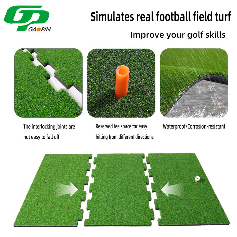 Tapis de golf antidérapant en PP robuste à 3 sections emboîtables, idéal pour l'entraînement de swing en intérieur et en extérieur, 150x90cm