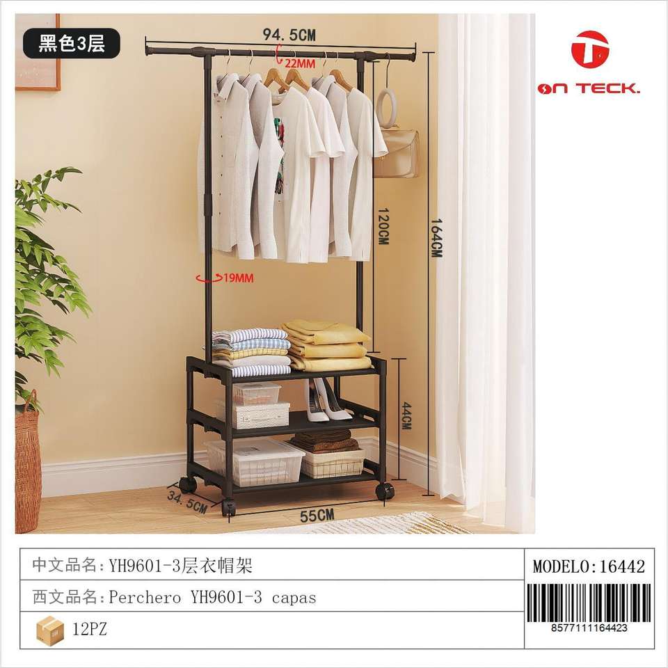 Porte-manteau à 3 niveaux en métal, support minimaliste autoportant, meuble de rangement pour salon avec roulettes et 6 crochets