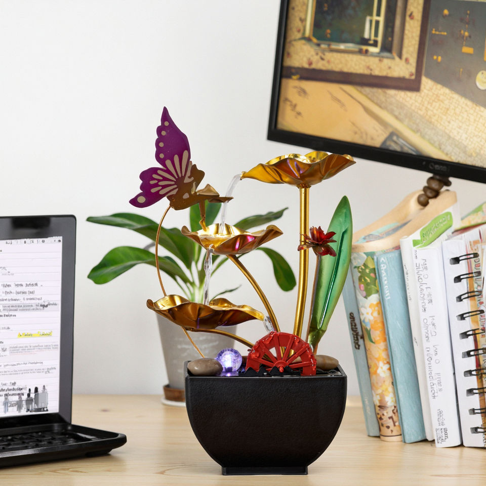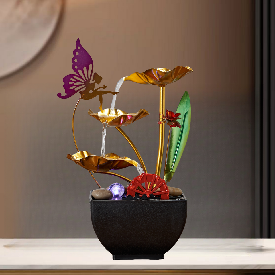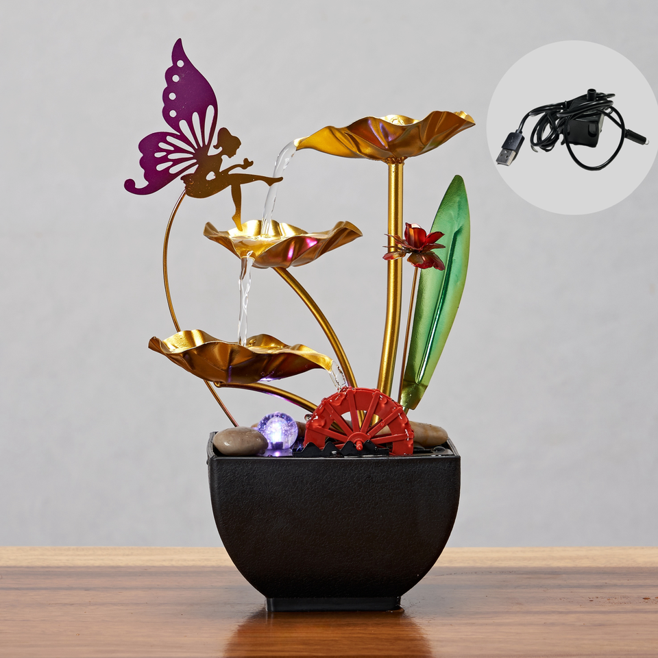 Fontaine d'eau d'intérieur à 3 niveaux, machine à sons de relaxation zen, décoration intérieure, pierres de rivière naturelles, plantes artificielles, verdure