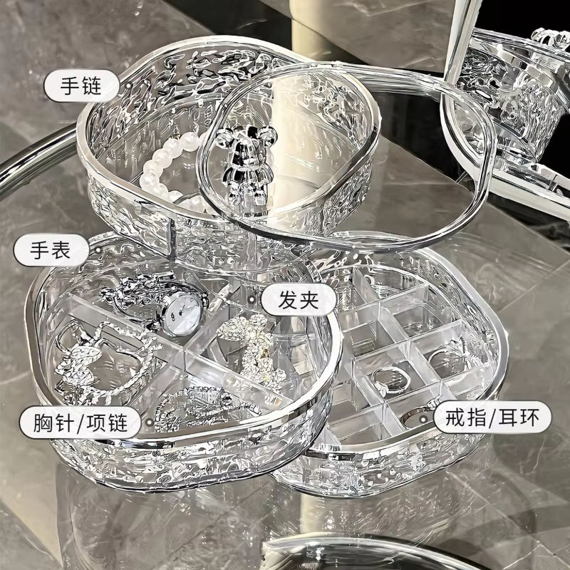 3-Layer Rotating Jewelry Box Water Ripple Ring Necklace Storage Rack Plastic Dressing Table Pendant Storage Necklace Earrings
