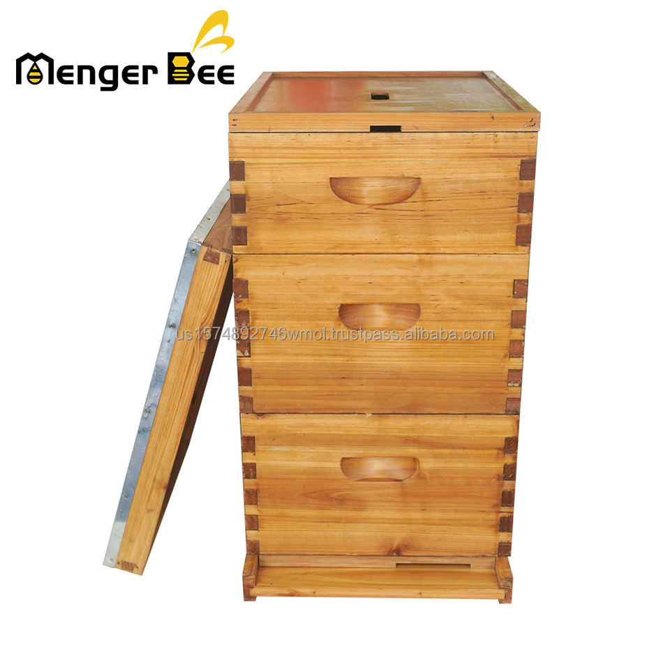 Nouvelle ruche Langstroth à 3 couches, 10 cadres, en sapin de Chine, revêtue de cire d'abeille, kit complet de démarrage pour apiculteur avec cadres