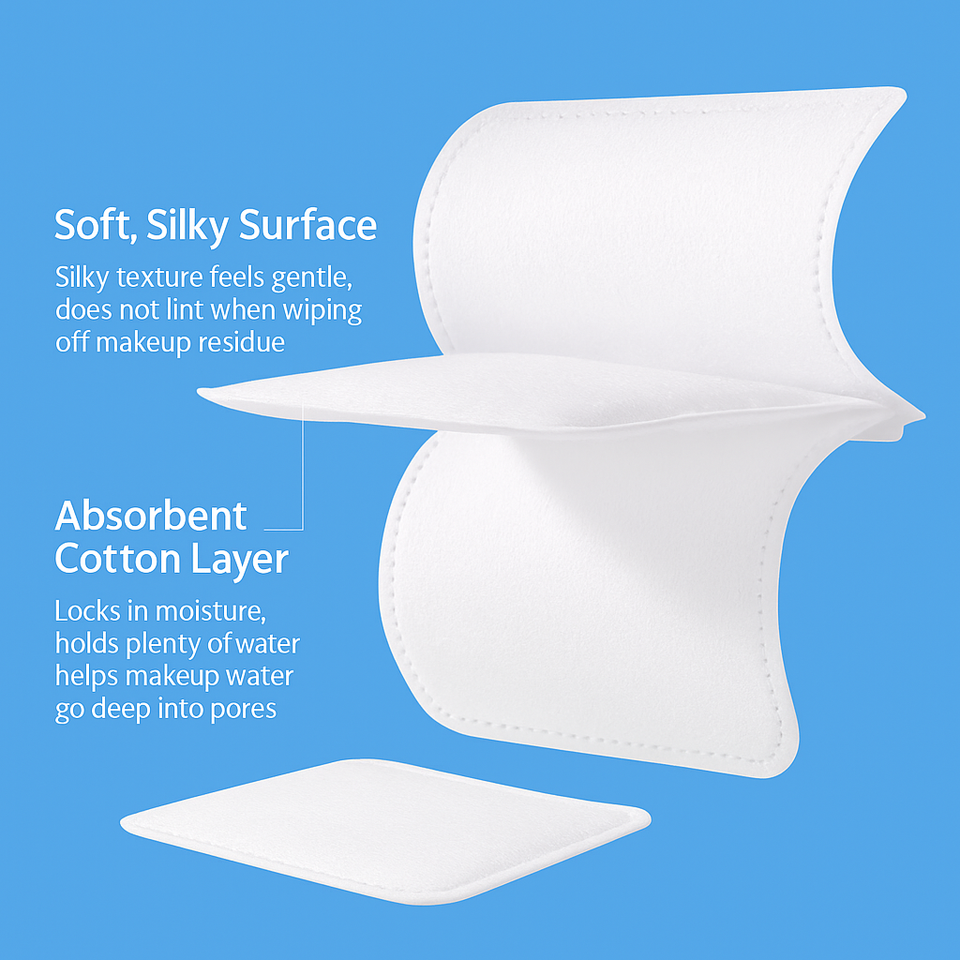 Coton doux et non pelucheux pour le démaquillage et le nettoyage du visage.