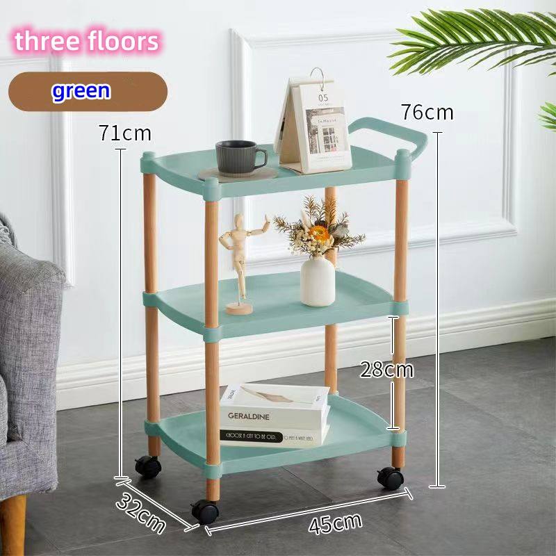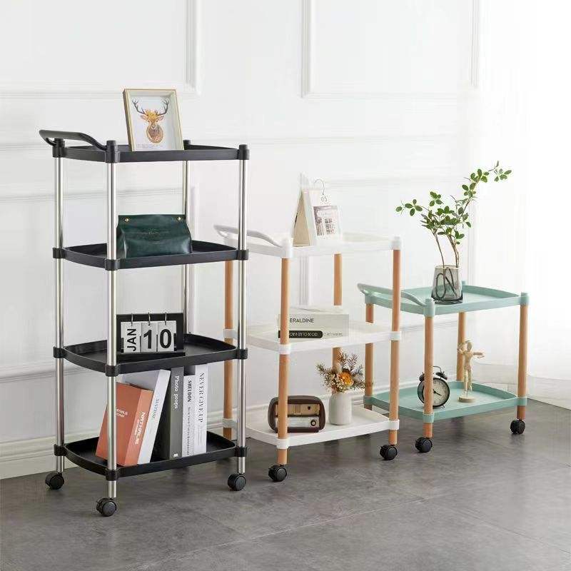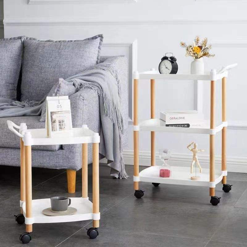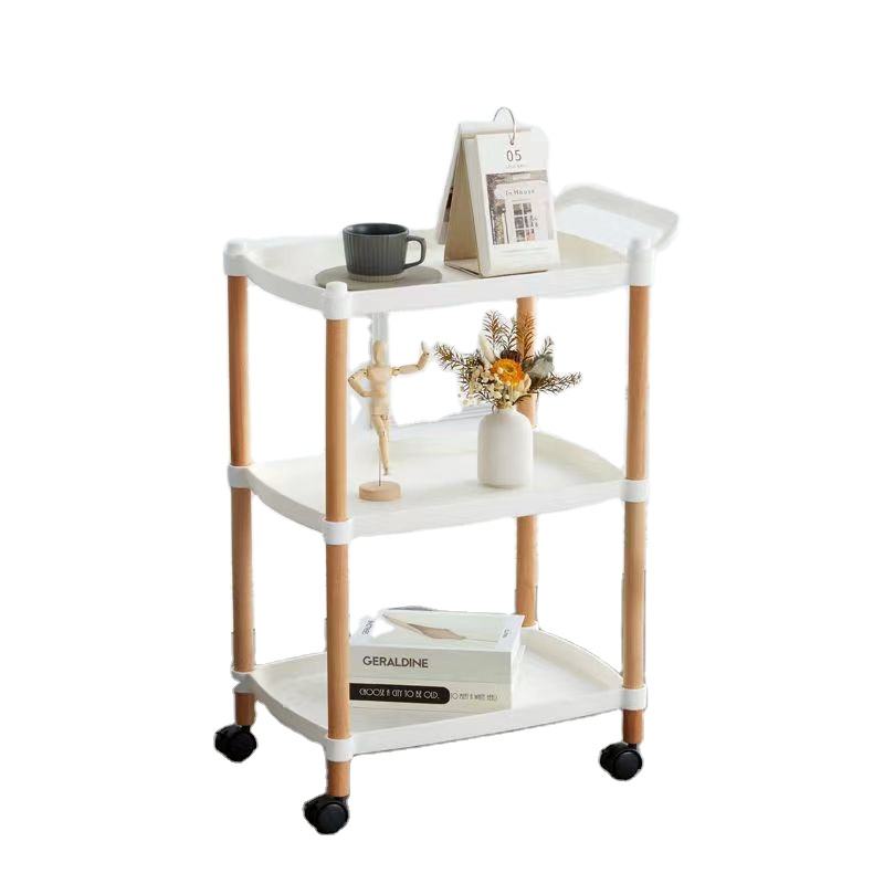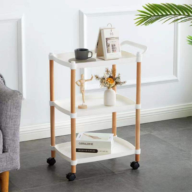 Table basse mobile à 3 niveaux en bois et PP avec chariot de rangement intégré, idéale pour la cuisine