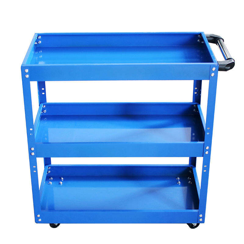 Chariot d'atelier mécanique à 3 niveaux avec roues, boîte à outils, établi de garage, étagères, accessoires pour véhicules et outils