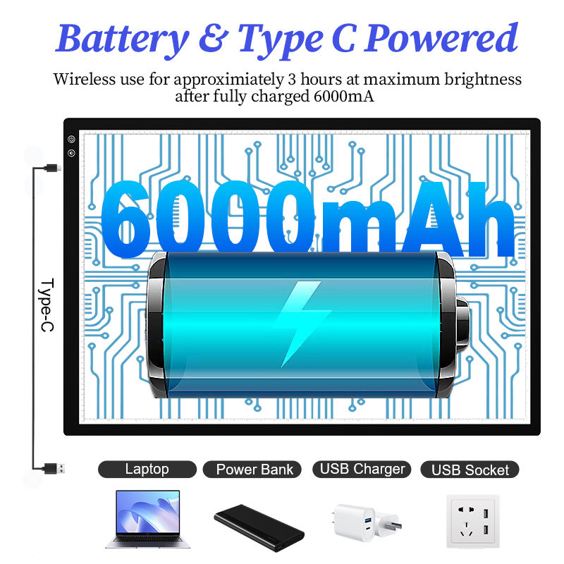 3 Modes d'éclairage Rechargeable LED Light Pad Large A1 Table Tracing Box for Diamond Painting Art Writing & Drawing Board Function