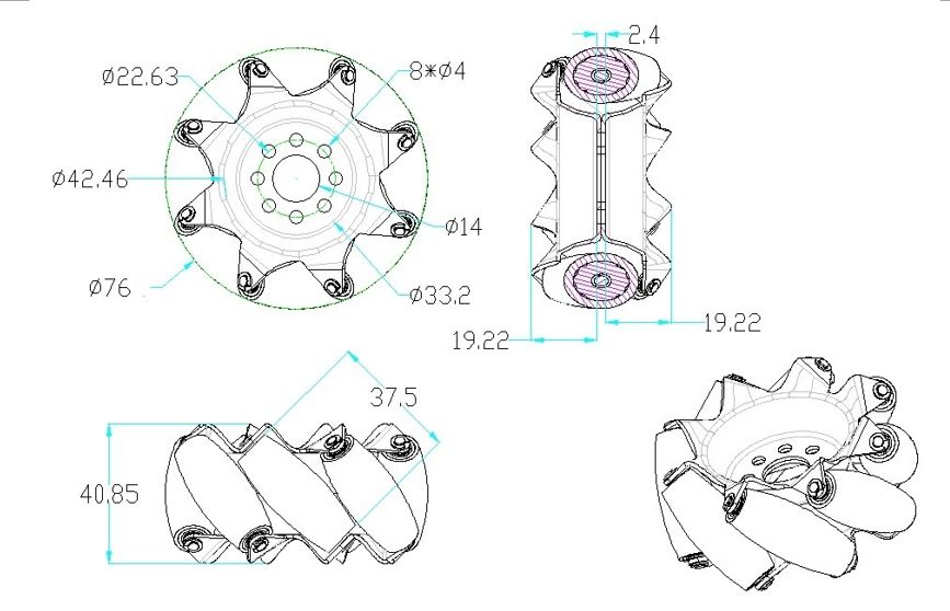 Roue Mecanum de 3 pouces (gauche) pour robot STEM REV WCP FTC FRC