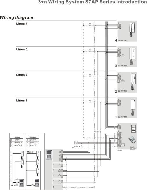 Kits d'entrée 3 + N avec couleur blanche, design élégant de style S, sonnette de porte de téléphone et transformateur, 2 boutons d'appel pour immeuble d'appartements
