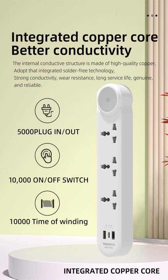 Prise de table 3 prises, 2 USB-A + 1 port Type-C, 10A 2000W, charge rapide, nouvelle innovation 2026, série WISH, pour usage domestique