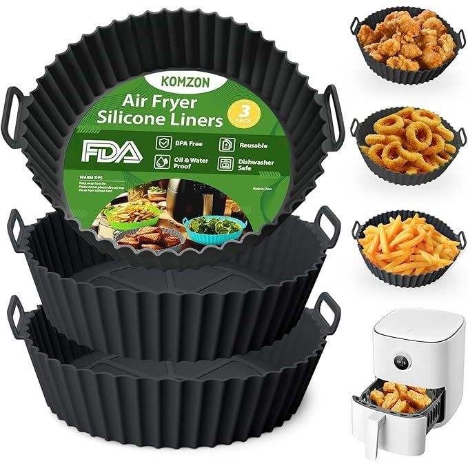 Lot de 3 doublures en silicone de 8 pouces pour friteuse à air, réutilisables, de qualité alimentaire, pour paniers de friteuse à air intelligents et fours