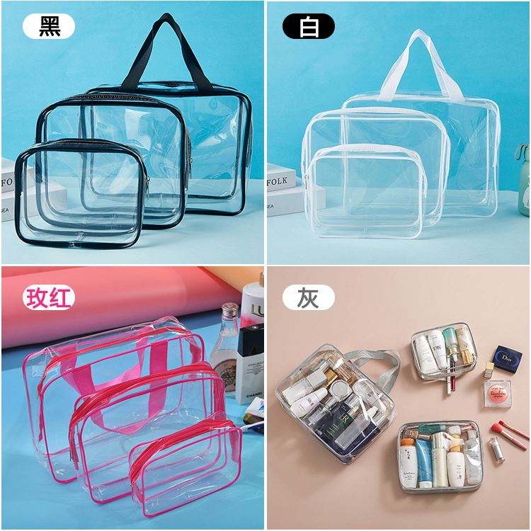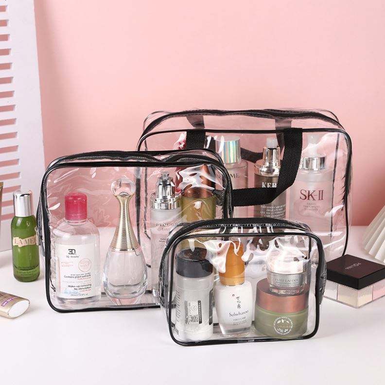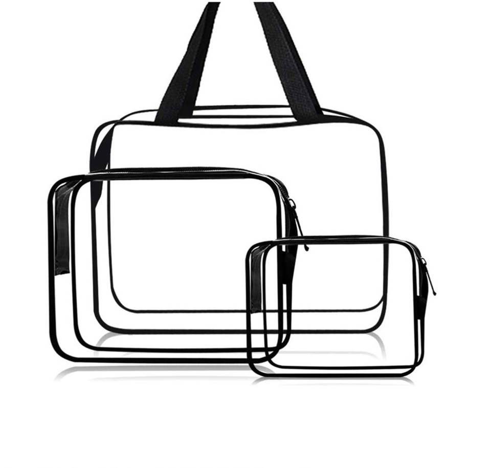 Lot de 3 sacs de toilette transparents en PVC imperméables de taille quart de gallon pour maquillage et cosmétiques, sacs organisateurs transparents pour femmes et hommes
