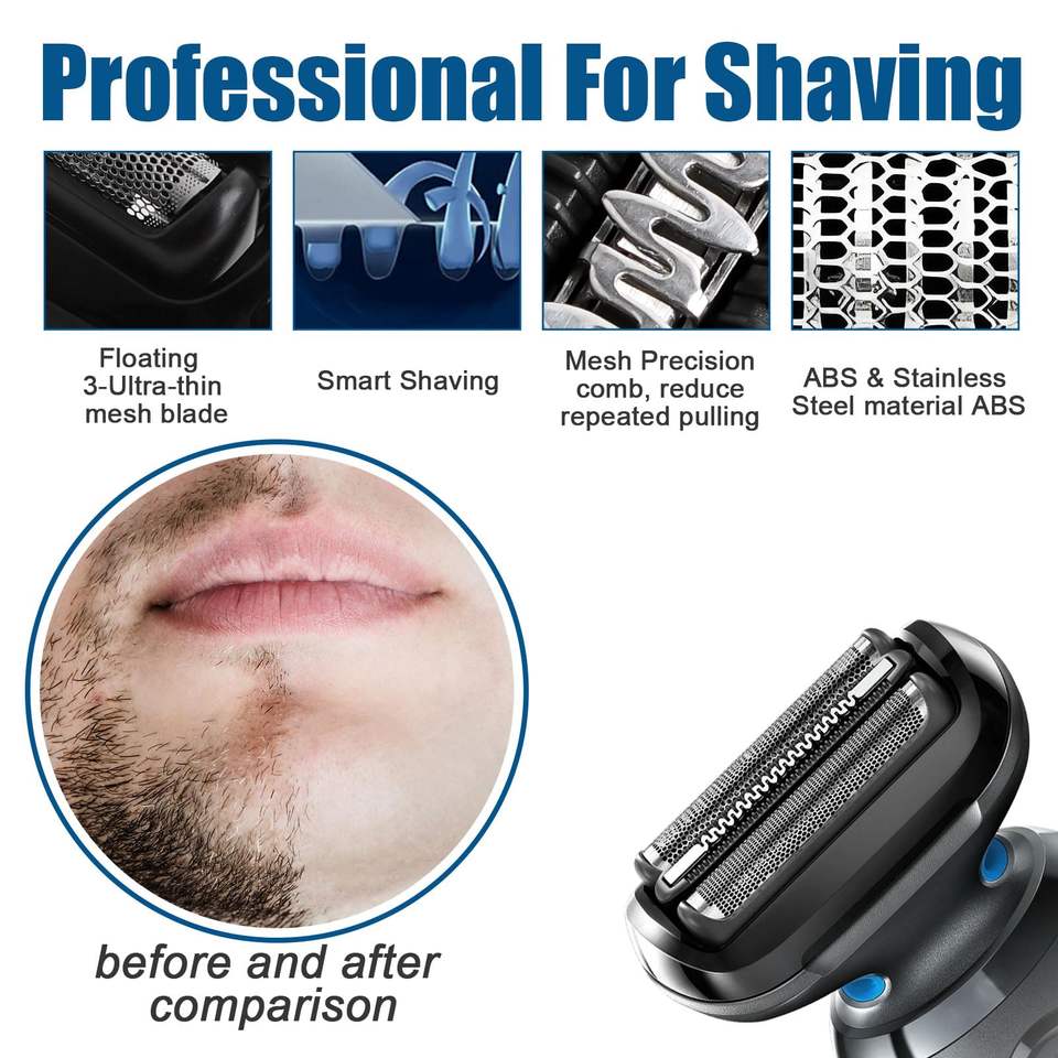 Lot de 3 Têtes de Rasoir de Rechange pour Rasoir Électrique Homme Noir Lame Double Rotative Étanche IPX7 Lavable pour le Visage