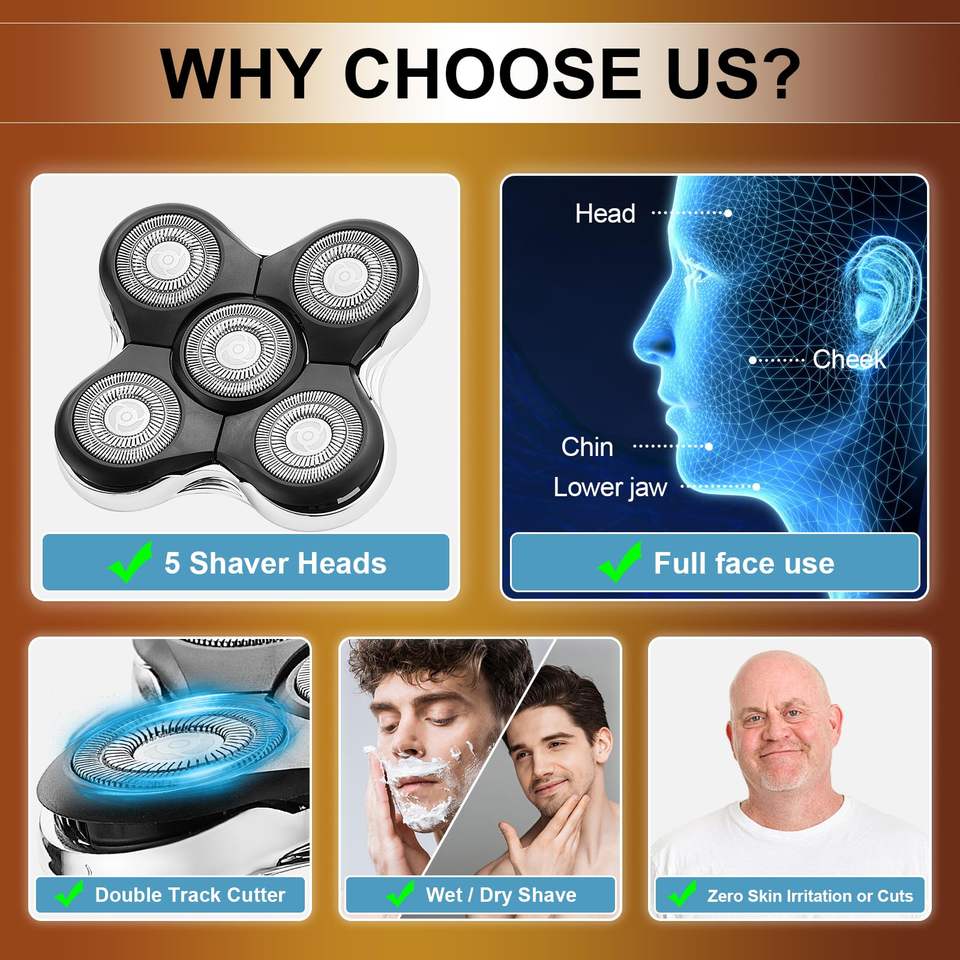 Lot de 3 Têtes de Rasoir de Rechange pour Rasoir Électrique Mini Rotatif, Lames Jumelles et Triples, Qualité Allemande, Lavables