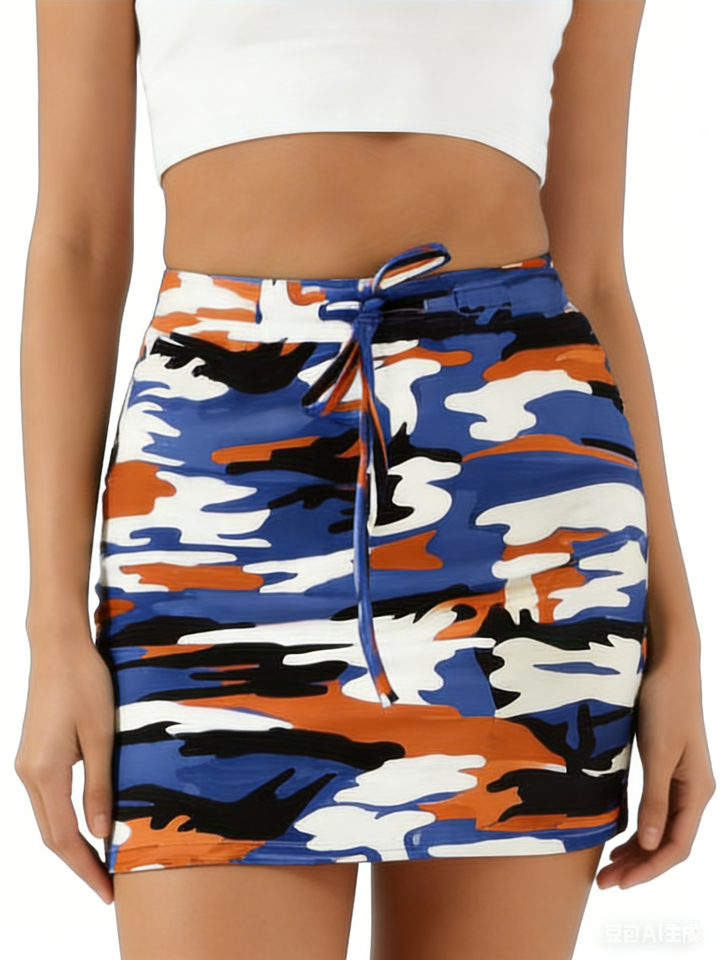 Lot de 3 mini-jupes tendance à imprimé camouflage avec cordon de serrage - Ensemble de jupes moulantes froncées pour tenues décontractées et de soirée