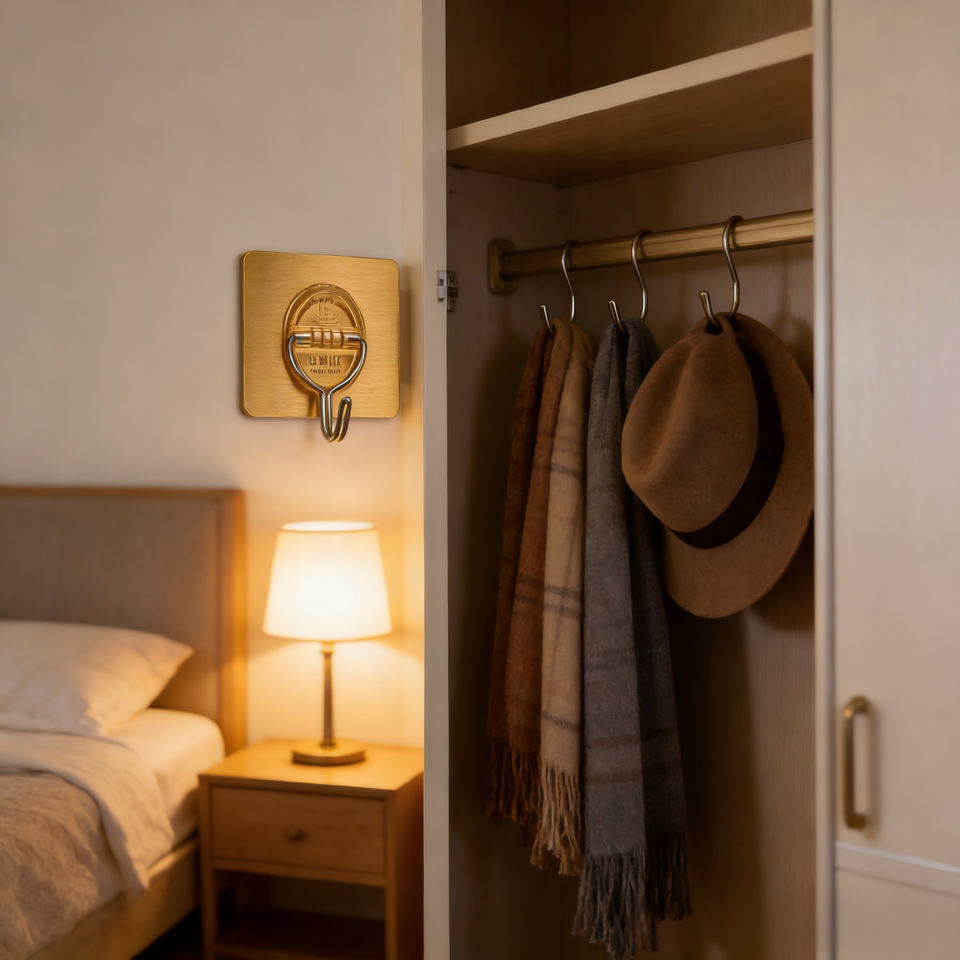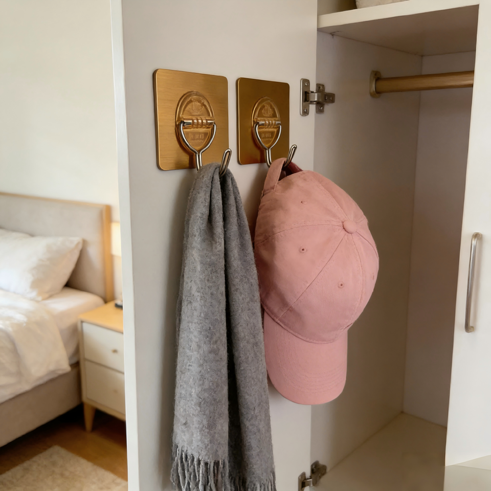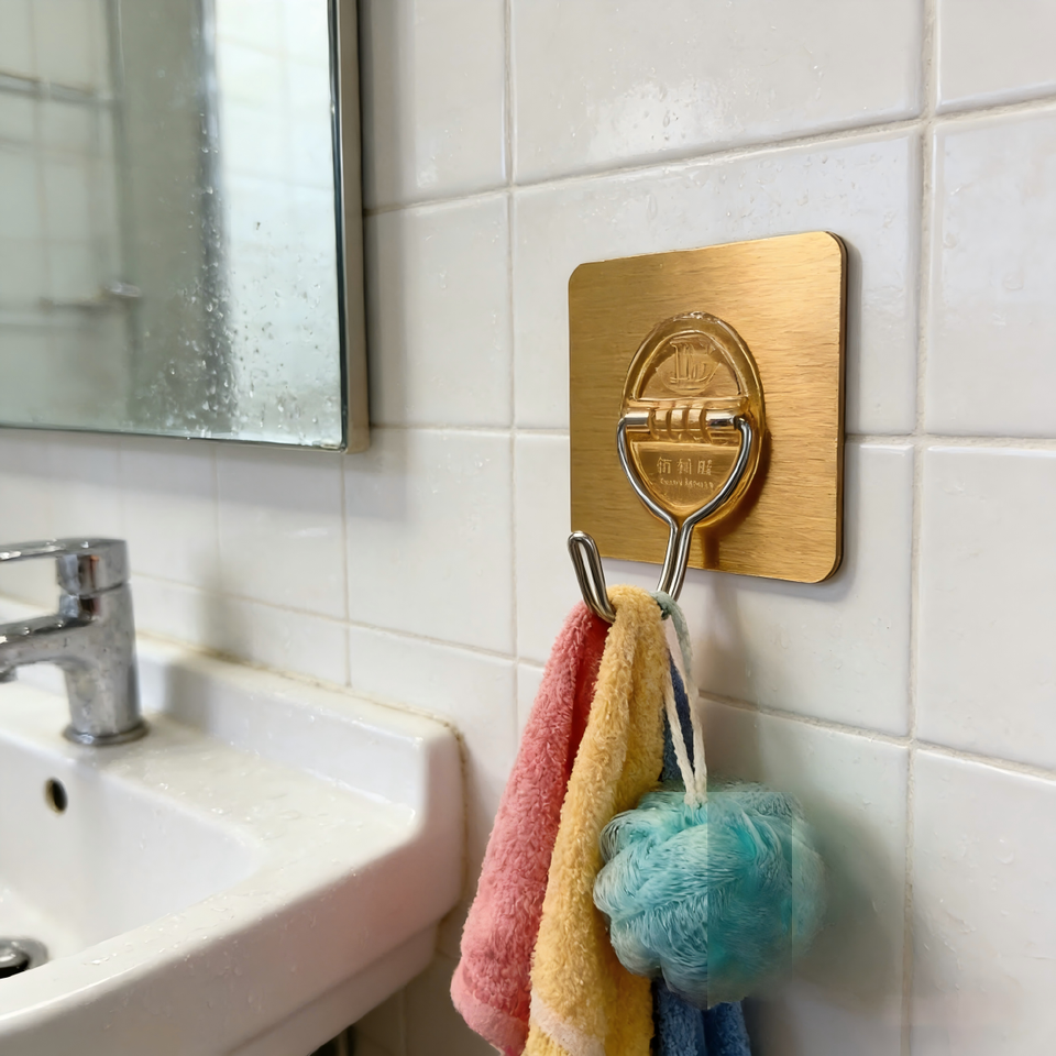 Lot de 3 crochets adhésifs muraux en plastique à double revêtement argenté, résistants, pour serviettes, vêtements, rangement mural, ventouse sous vide