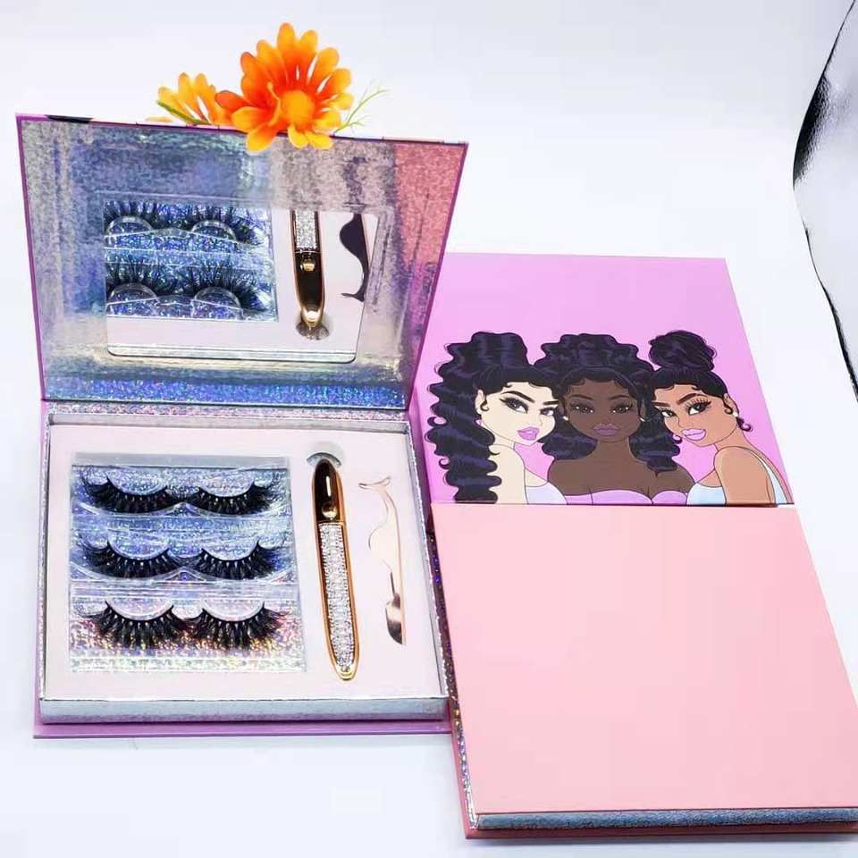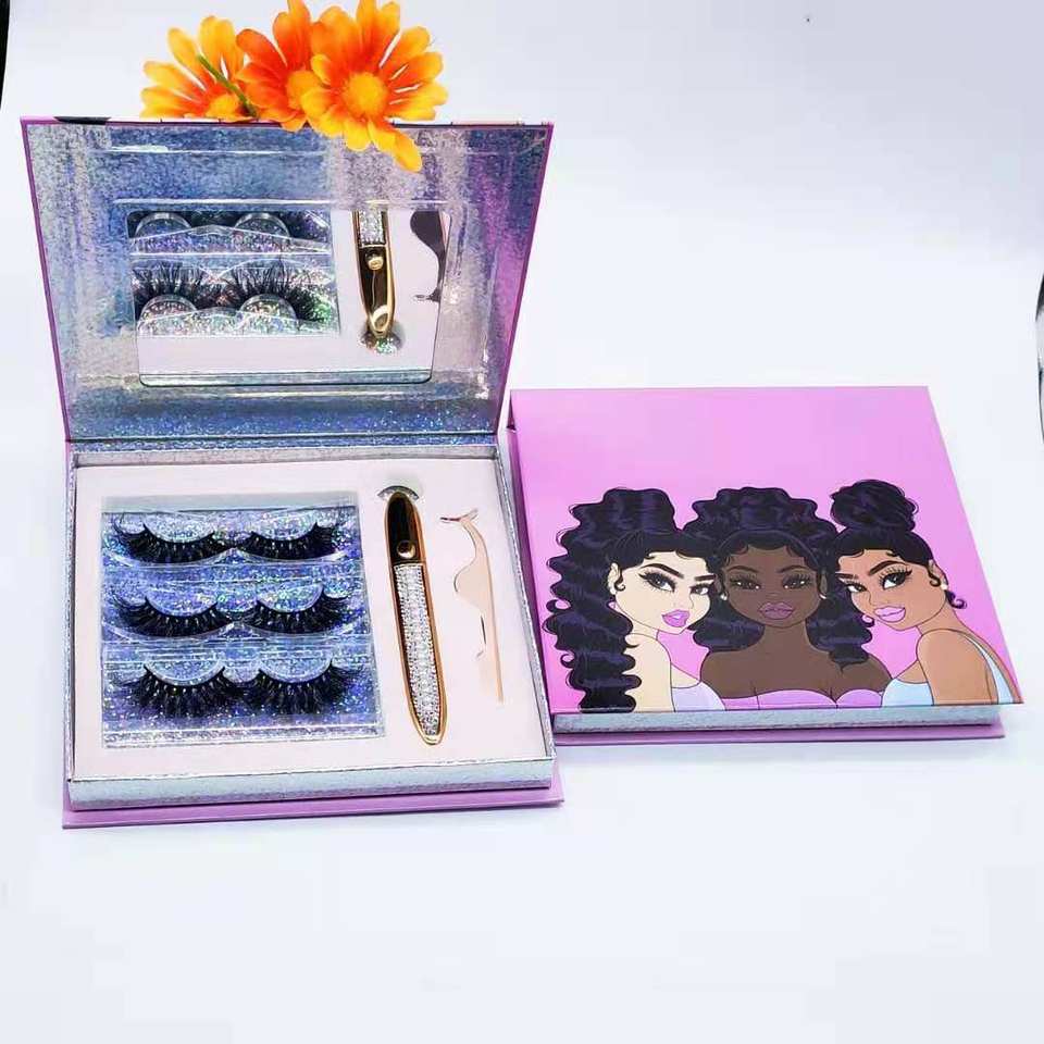 3 Pairs Eyelash Box Packaging With Tweezer Eyelash Vendor Customized Boxes Packaging Box Private Label Wholesale