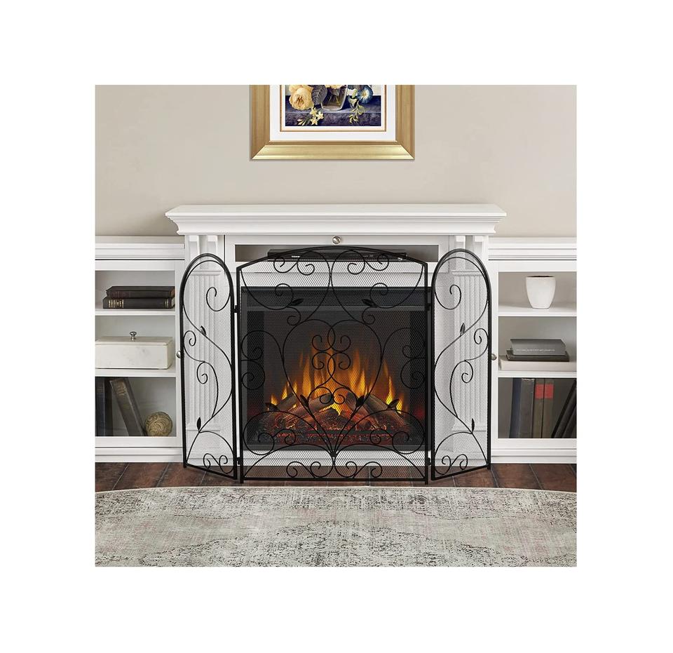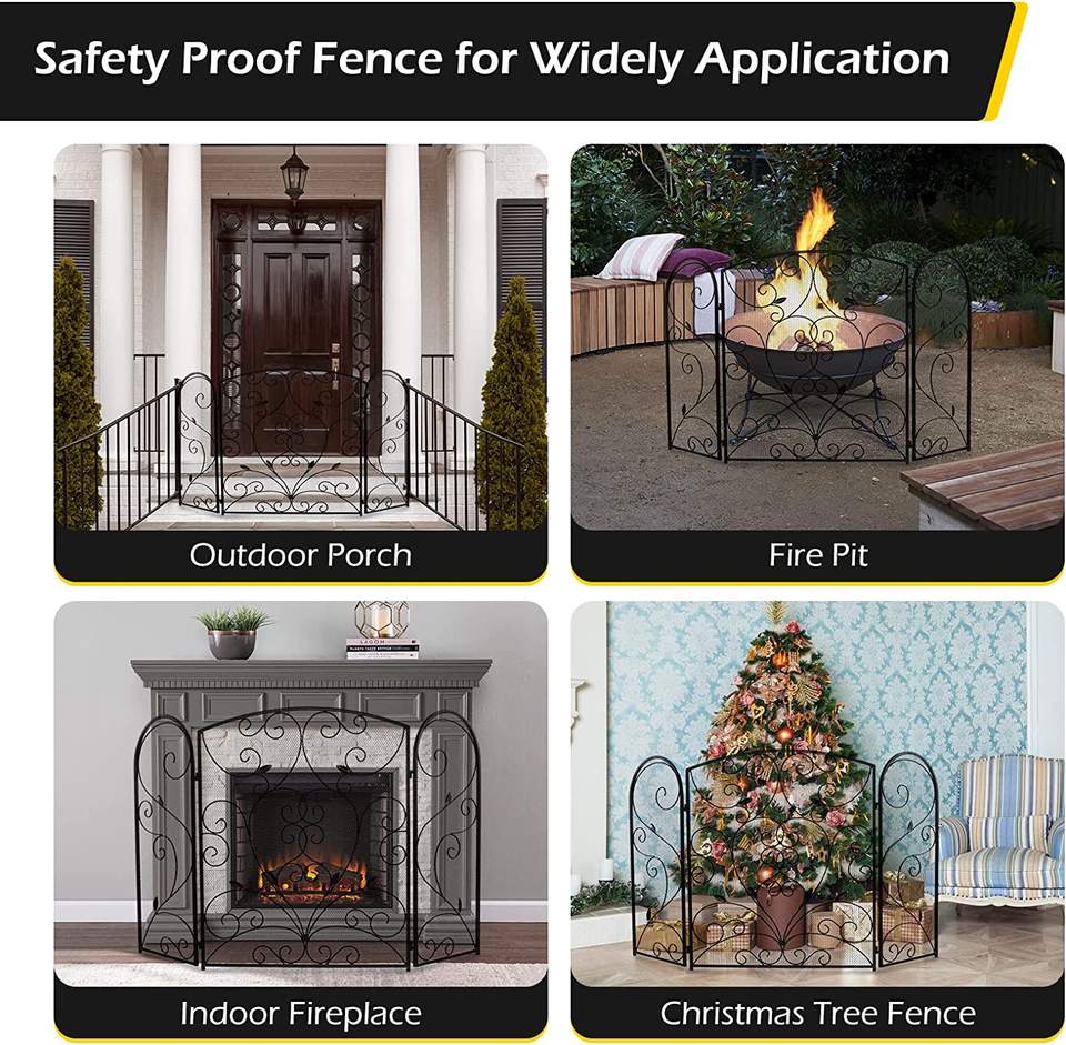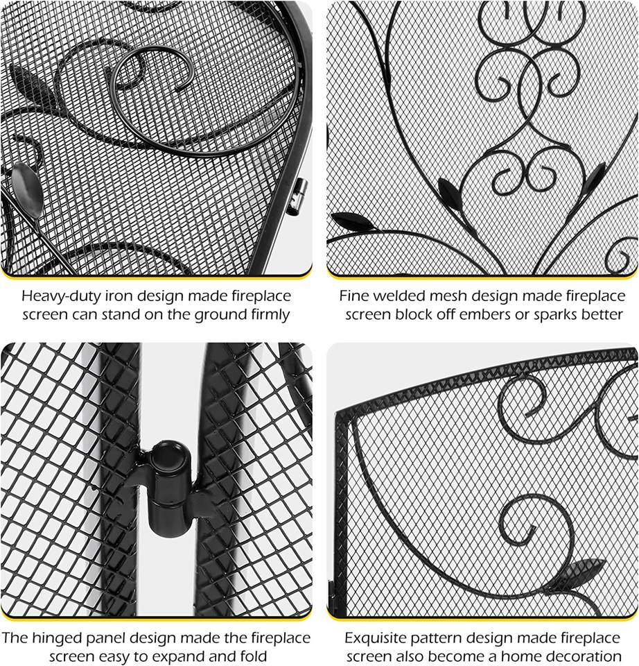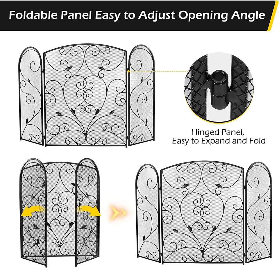 Ecran de cheminée à 3 panneaux, pliable à plat, en fer forgé massif, en métal, couverture décorative en maille, outils de cheminée