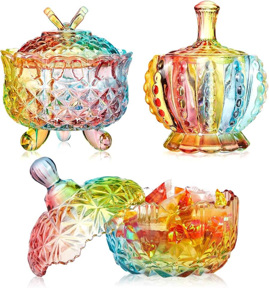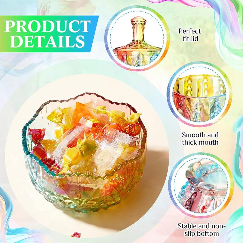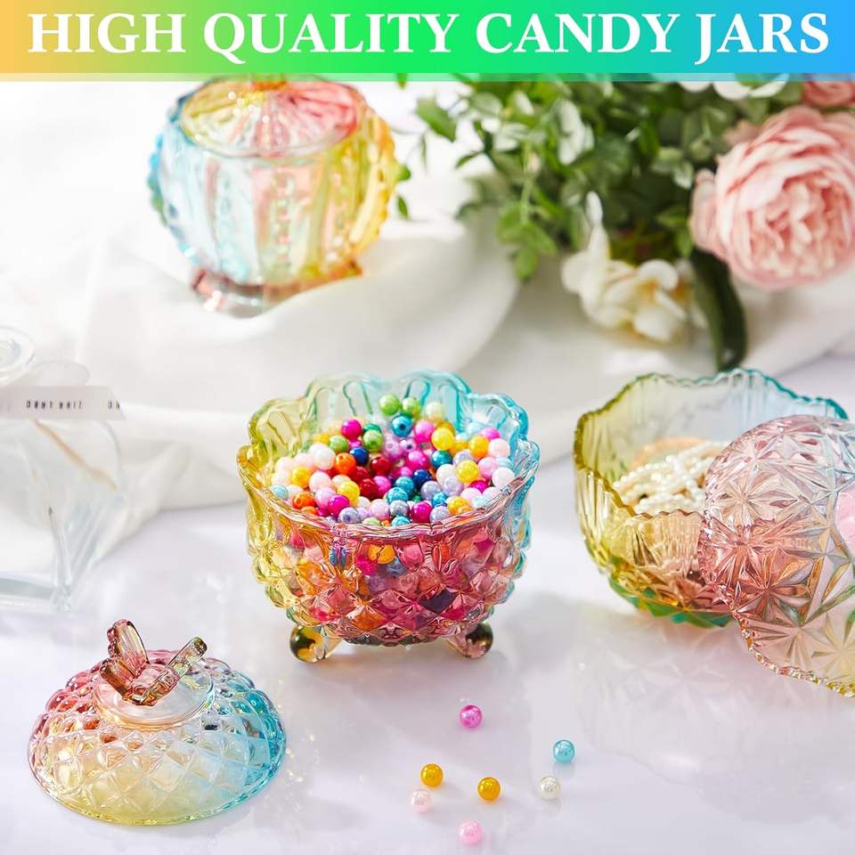3 pièces, 3 tailles (10/9/6 oz), pots à bonbons en verre coloré gaufré avec couvercles, coupelles en cristal sur pied pour bijoux, biscuits, buffet