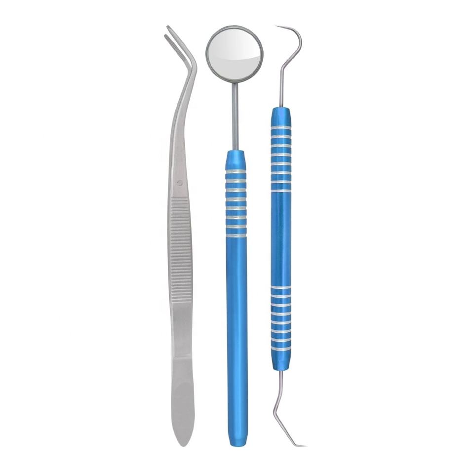 Kit d'examen dentaire 3 pièces, kit d'hygiène de base, pince, miroir, explorateur, outil de nettoyage