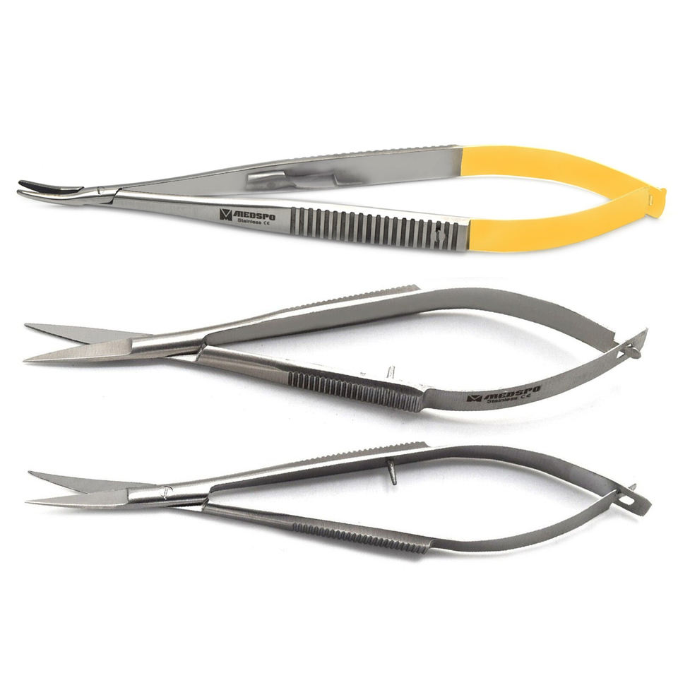 Kit de micro-chirurgie en acier inoxydable 3 pièces, ciseaux à ressort Noyes, porte-aiguille Castroviejo, instruments chirurgicaux dentaires