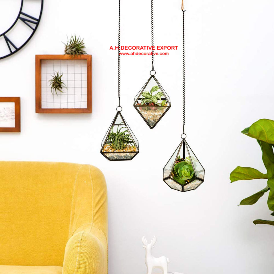 Semitree — petite planteur géométrique en verre suspendu, 3d, 3 pièces, plante moderne verticale pour la décoration du balcon et du rebord de fenêtre
