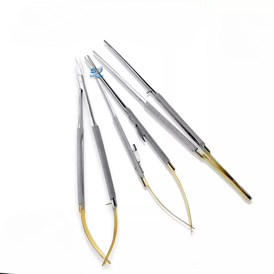 Ensemble de microchirurgie Castroviejo 3 pièces, comprenant un porte-aiguille droit, des pinces et des ciseaux, pour ophtalmologie et chirurgie plastique