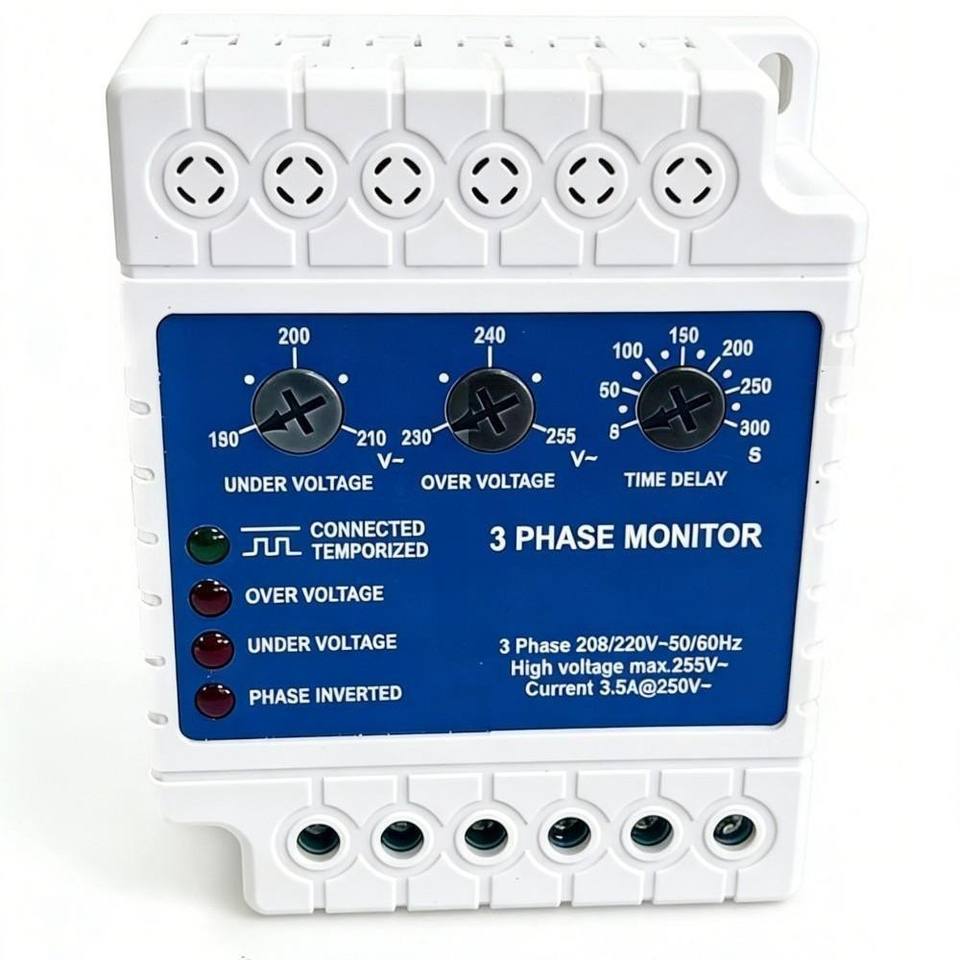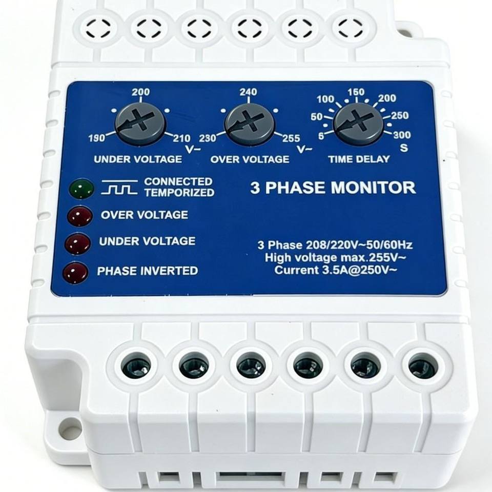 Moniteur de tension triphasé 208/220V 50/60Hz avec protection contre les surtensions et les sous-tensions pour climatiseurs, réfrigérateurs, moteurs