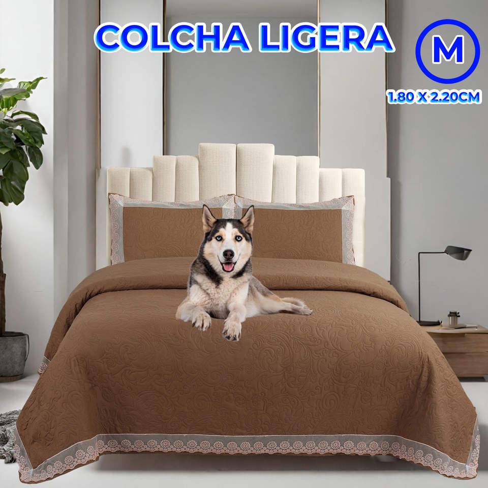 Ensemble 3 pièces couvre-lit et taie d'oreiller avec design discret à volants: élégance et confort-180*220, café