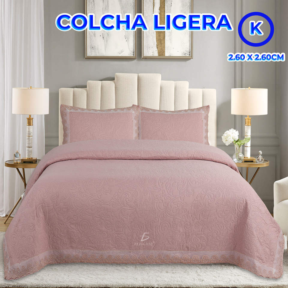 Ensemble 3 pièces couvre-lit et taie d'oreiller avec design discret à volants: élégance et confort-220*220, rose