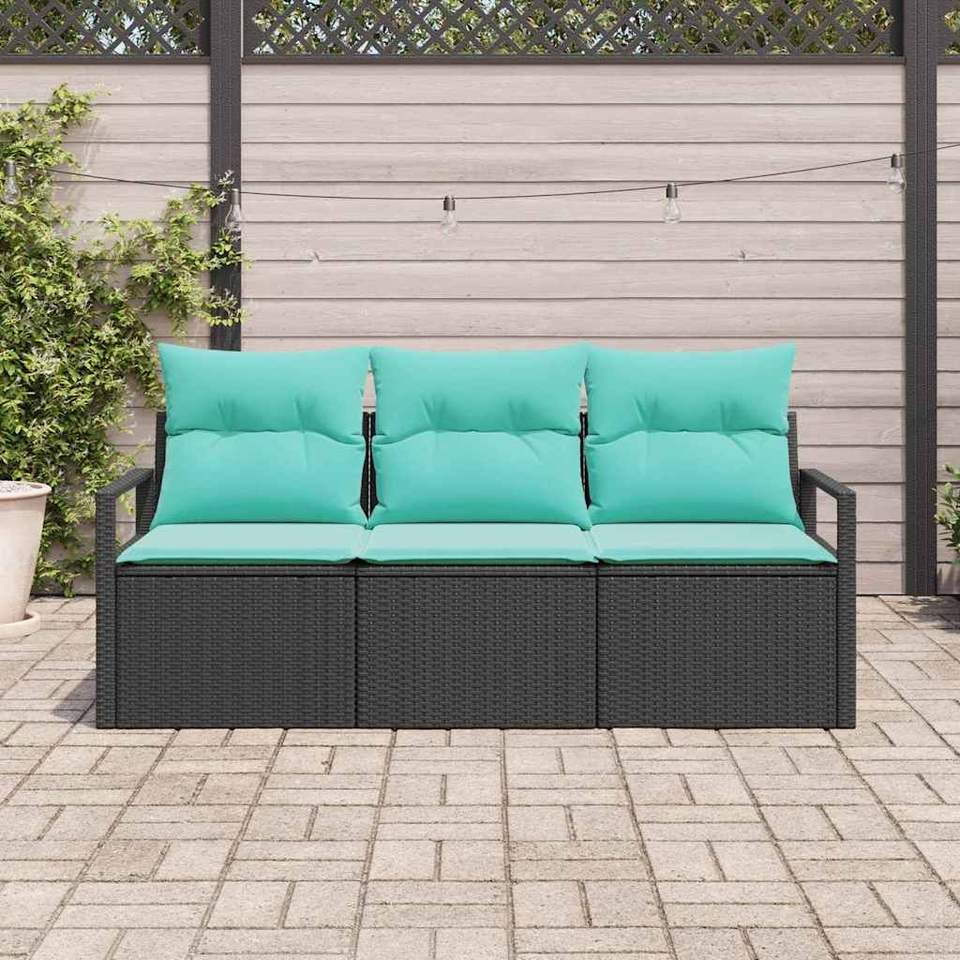 Ensemble de canapés de jardin en polyrotin noir, 3 pièces