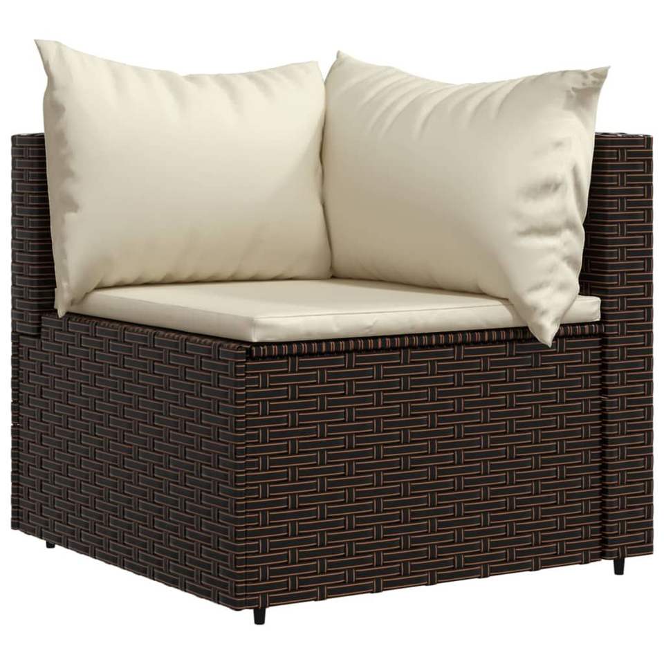 Ensemble de salon de jardin 3 pièces en polyrotin marron avec coussins