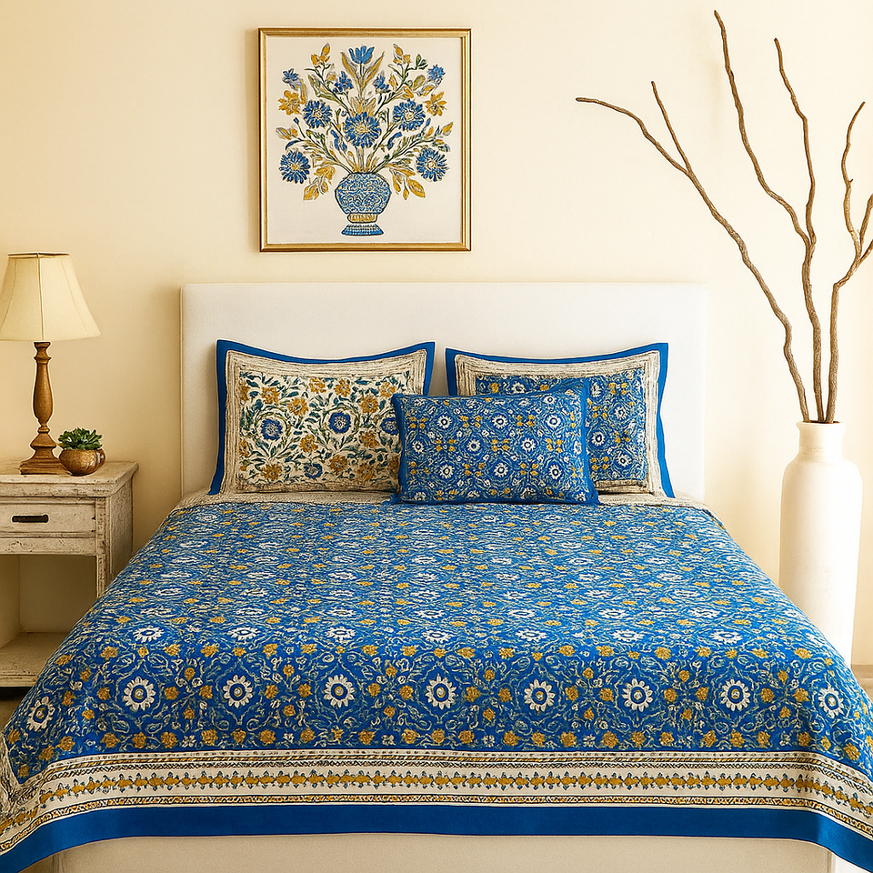 Keywords:hand block printed premium cotton bedsheets