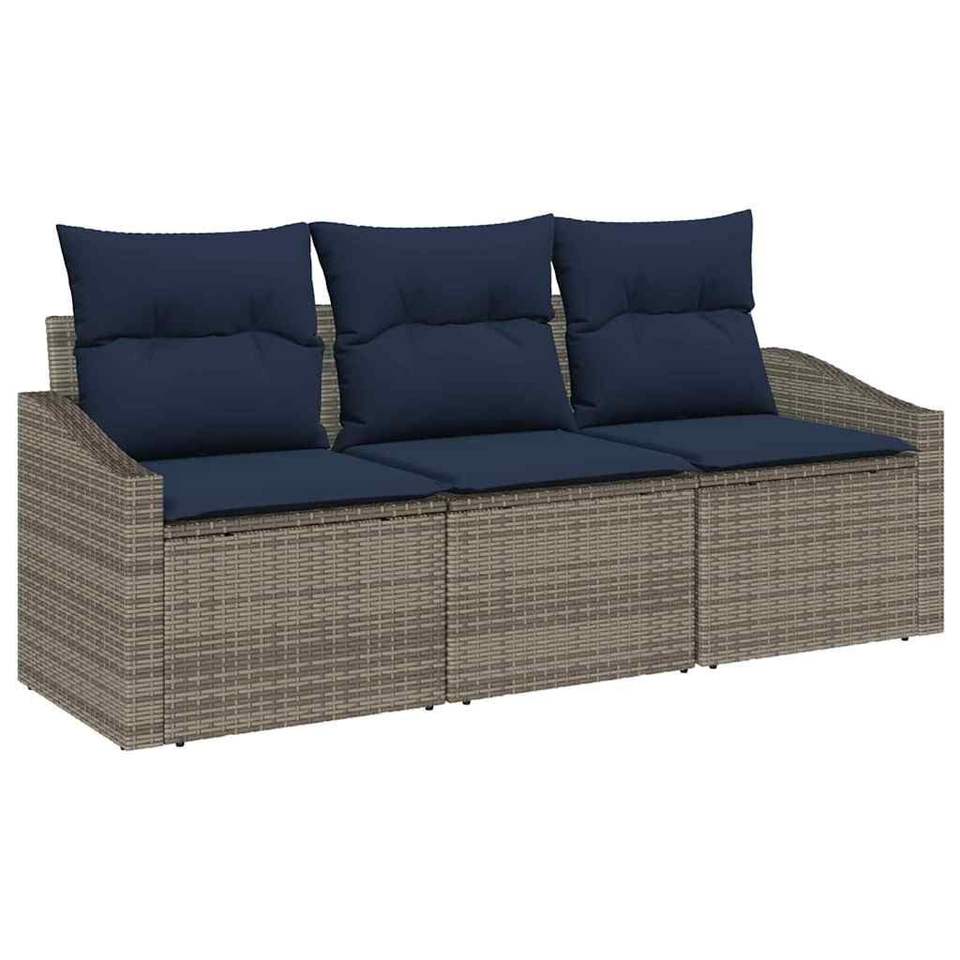 Ensemble de canapés de jardin 3 pièces en polyrotin gris avec coussins