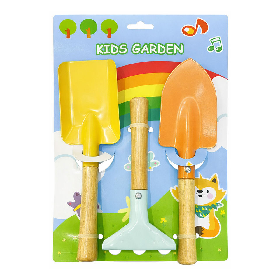 Ensemble d'outils de jardin pour enfants en 3 pièces, petits outils de jardin, mini-outils de jardinage avec manches en bois pour enfants