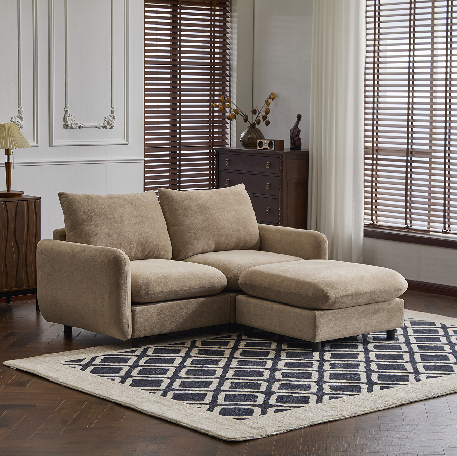 Canapé modulaire en velours en forme de L, 3 pièces, combinaison libre, avec ottoman