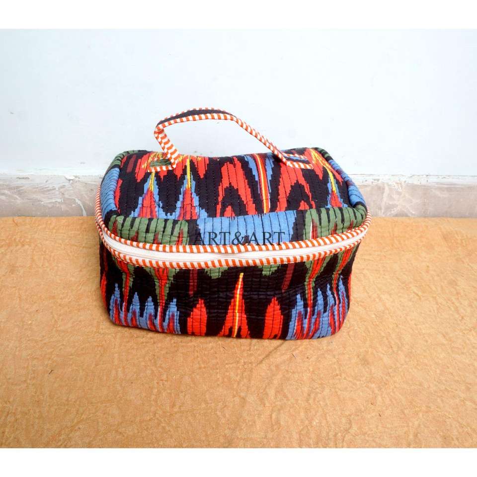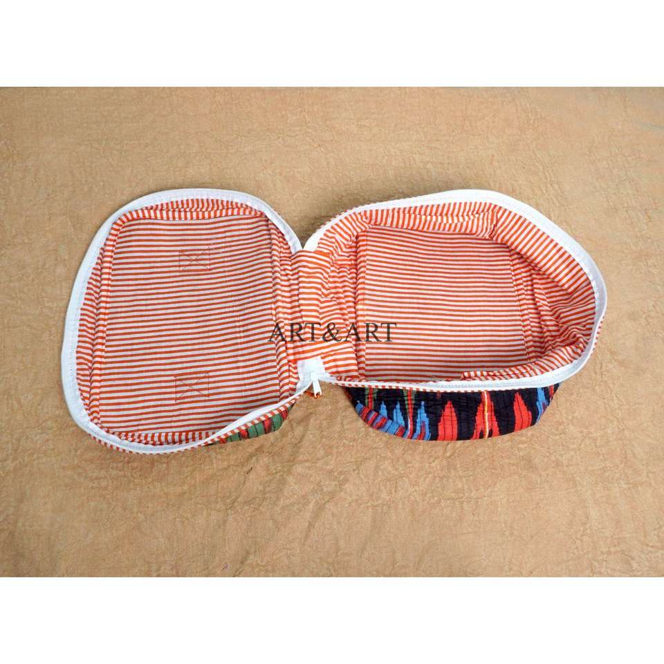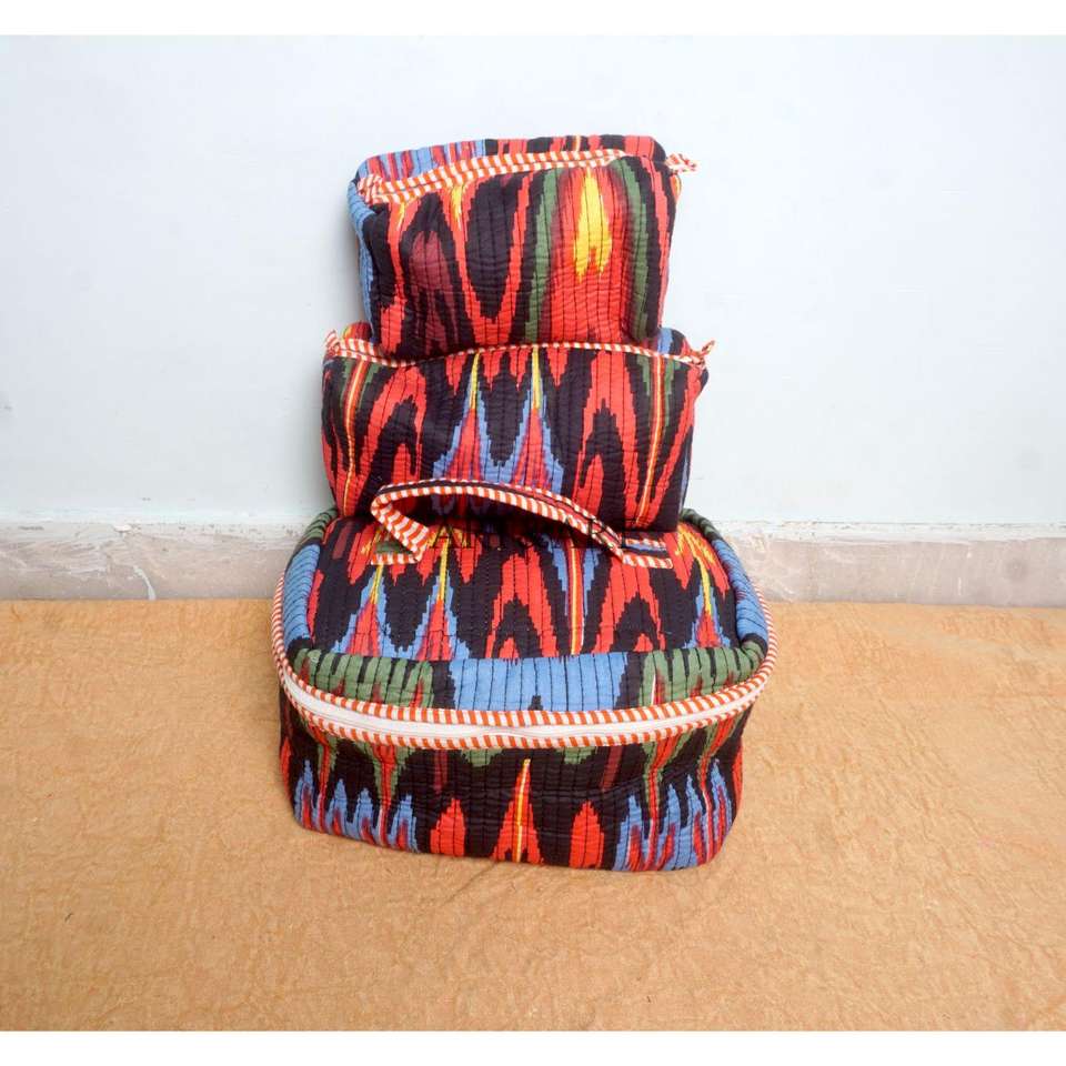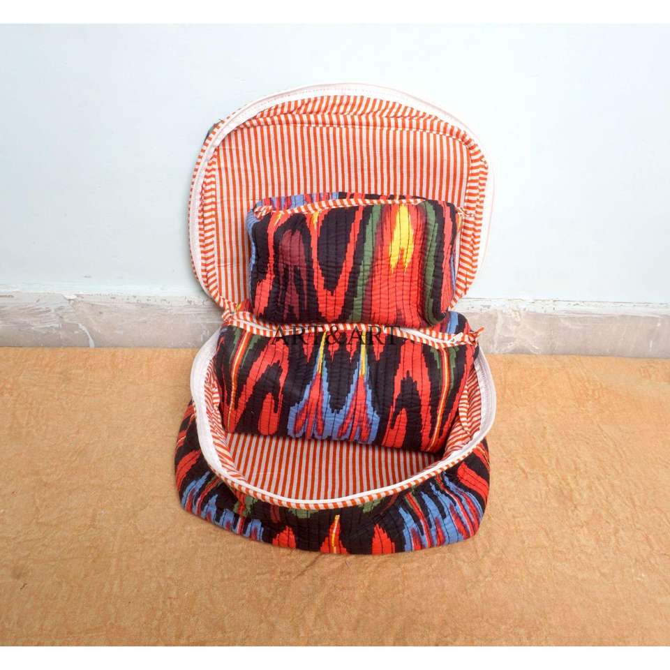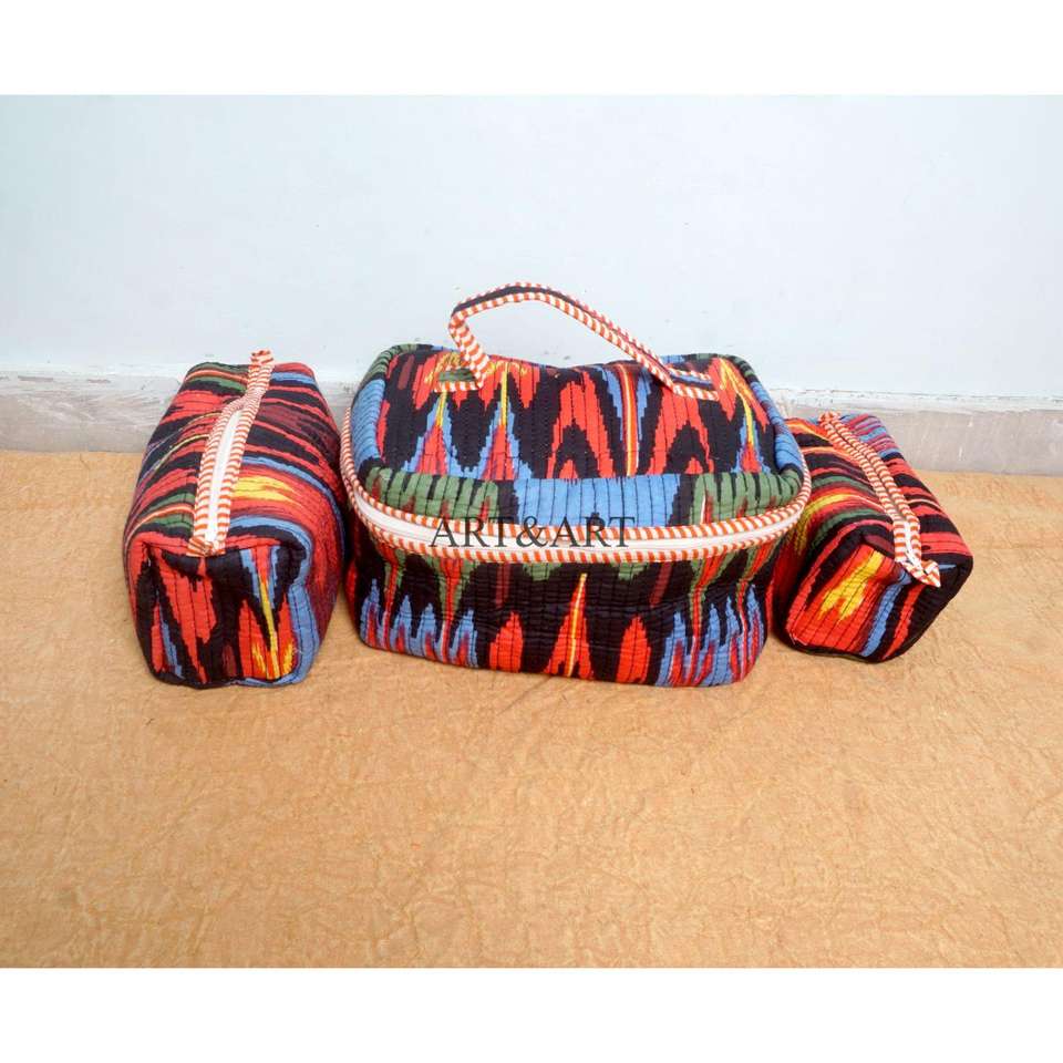 Ensemble de 3 trousses de toilette en coton imprimé à la main, grande capacité, avec fermeture éclair, imperméables, durables et réutilisables pour les voyages
