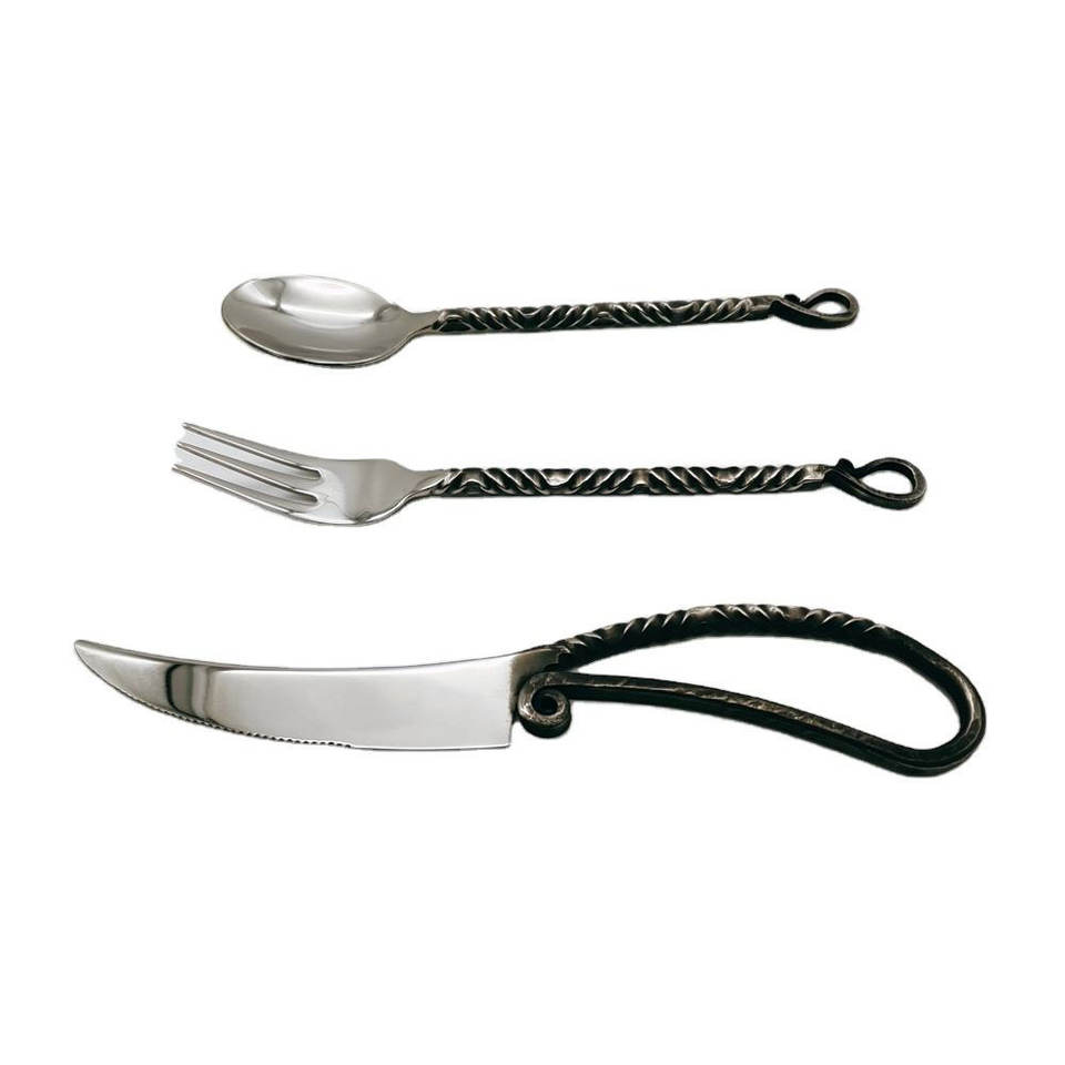 Ensemble de 3 pièces de couverts médiévaux torsadés forgés ensemble de couverts médiévaux Viking couteau cuillère fourchette ensemble forgé à la main