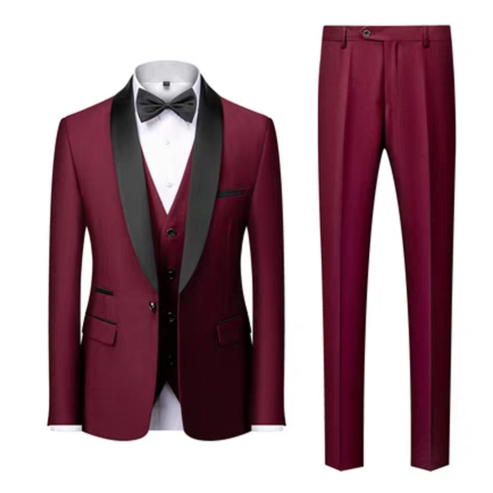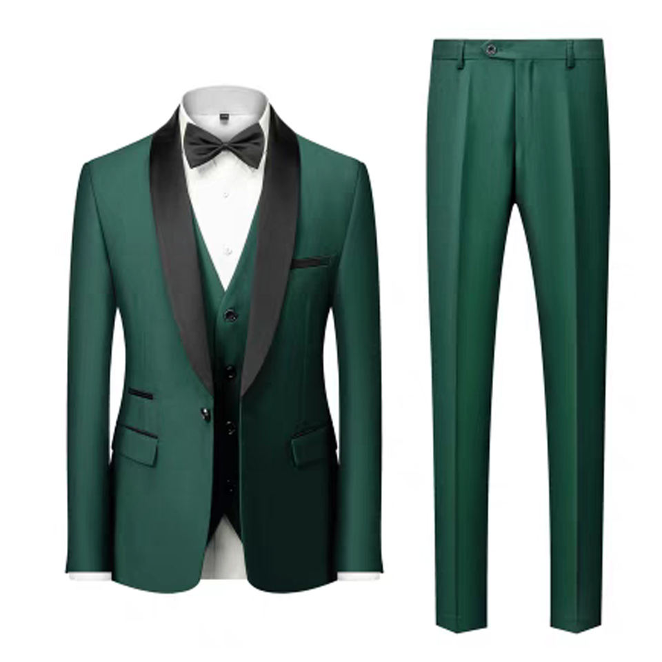 Ensemble de costumes d'affaires pour hommes en 3 pièces, noir et vert, gilet à col en V avec pantalon et veste pour mariages et cérémonies
