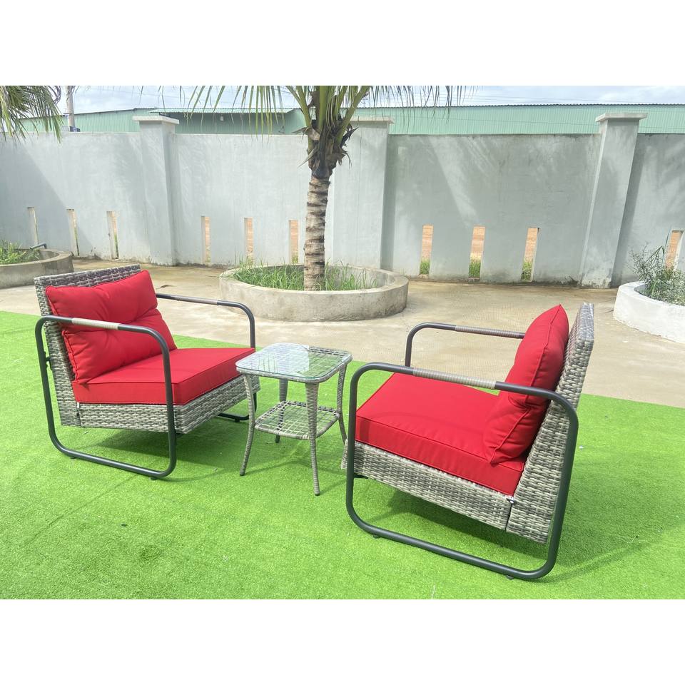 Ensemble de jardin en rotin extérieur 3 pièces Patio Bistro Glider avec coussins et table d'appoint en verre pour patio ou jardin