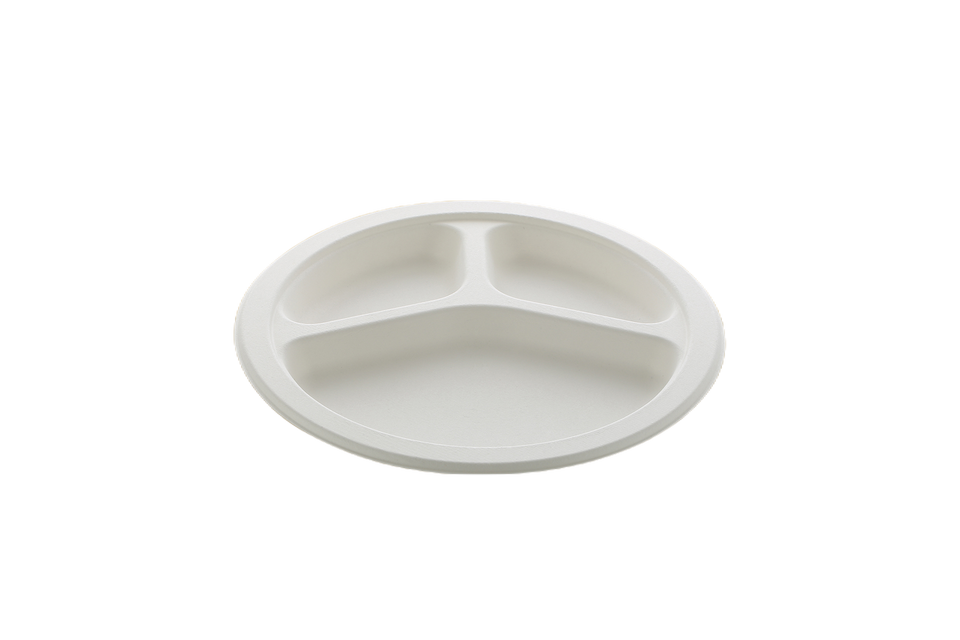 Assiette ronde en bagasse de 10 pouces de qualité supérieure, 3 compartiments, vaisselle élégante pour la maison, les restaurants et les fêtes