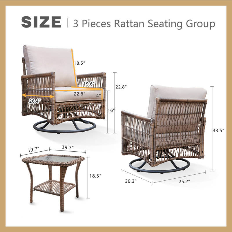 Ensemble de jardin en rotin 3 pièces avec coussins confortables pour sièges d'extérieur