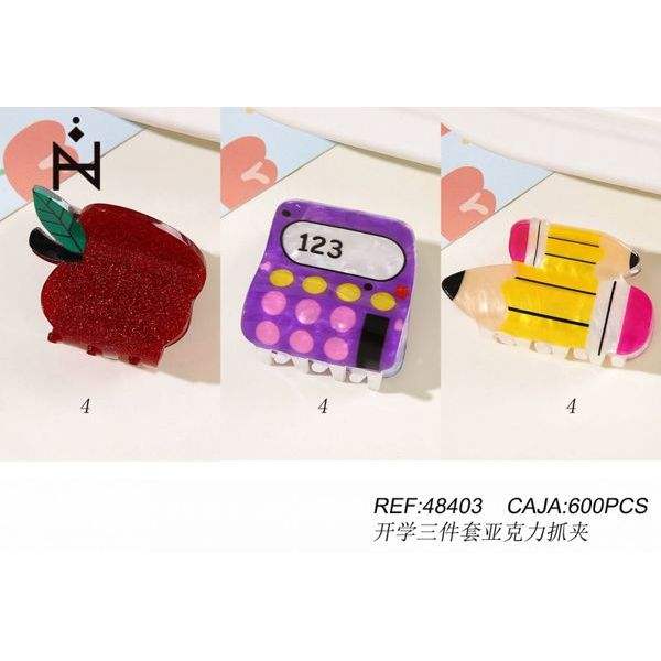 Ensemble de 3 pinces à cheveux scolaires en acrylique, design pomme, calculatrice et crayon, pour étudiants